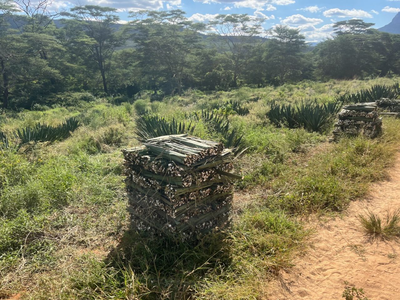 From the savannah and its acacias, suddenly the landscape in a large valley changes. A river, greenery, agriculture. But what are these crops, these fields of yucca? Sometimes there are people in these fields cutting them up and making big, neat piles that a lorry will soon pick up.
