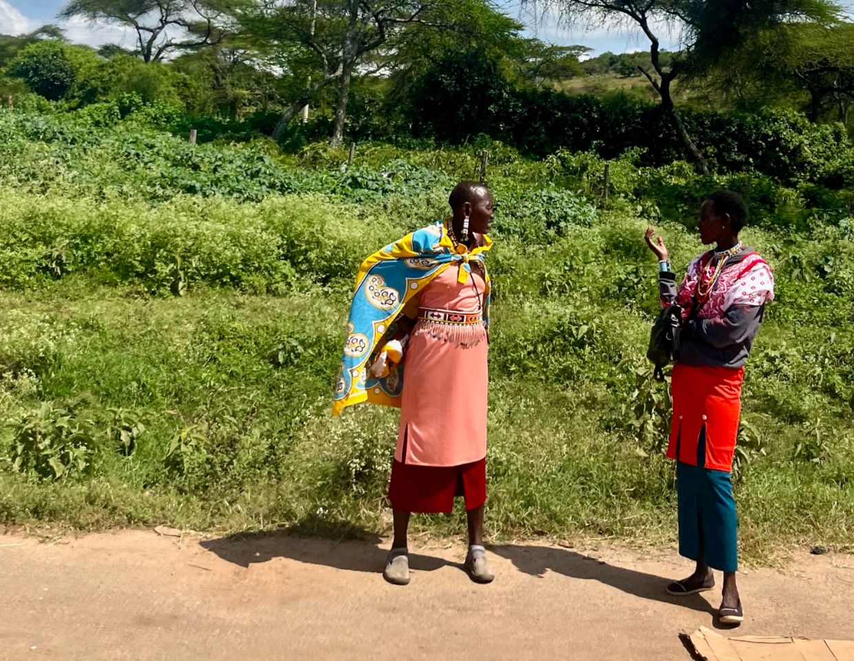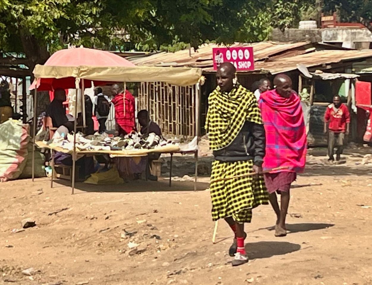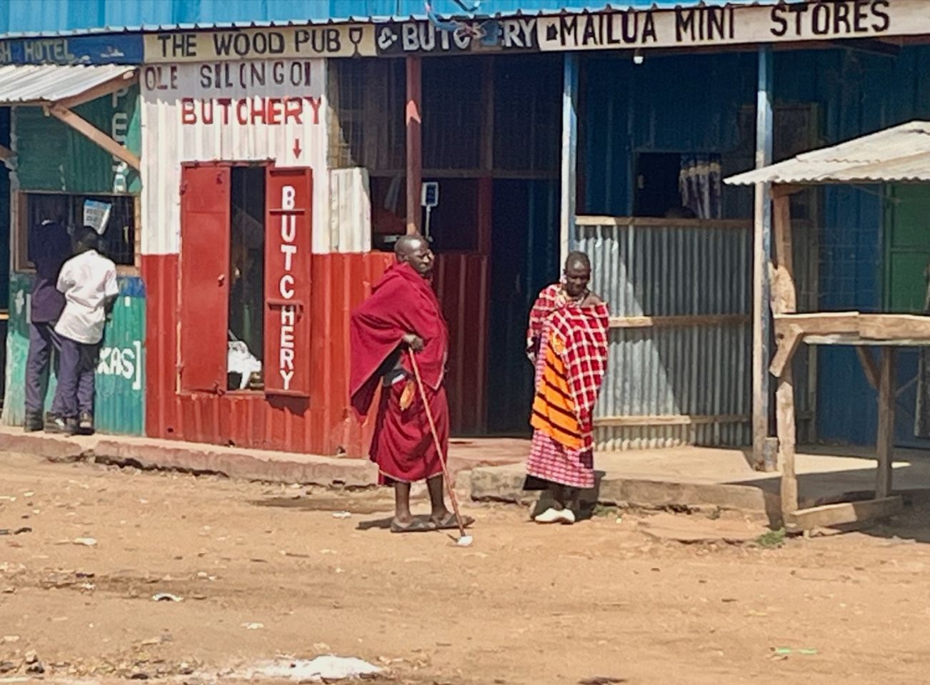 As we make our way along the Tanzanian border, you can't miss the Masai, they're everywhere. You might say that's normal, as we're on their land to some extent. They're easy to recognise, wearing cloth like a predominantly red blanket (although this can vary from tribe to tribe), holding a stick of varying lengths, standing along roadsides or next to small herds of sheep, goats or cows. In general, they wear dangling earlobes and sometimes jewellery, mainly made of small beads, especially around the necks of the women.