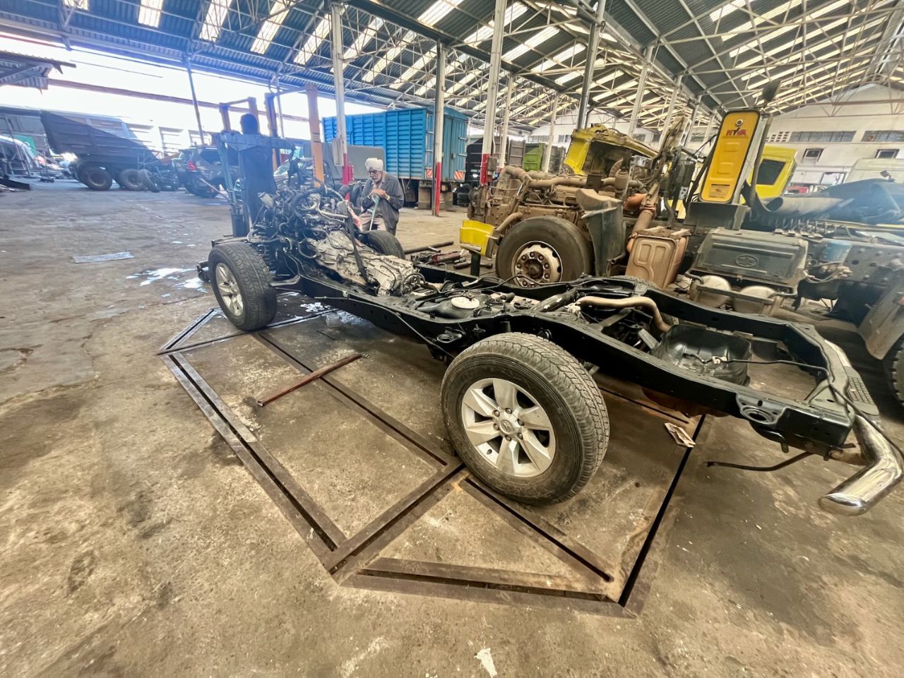 L'originalité du garage vient du fait qu'il ne s'agit pas vraiment d'un garage mécanique mais plutôt d'un carrossier spécialisé dans la remise à neuf de véhicule bien amoché. Leur grand dada c'est d'enlever la carrosserie et l'intérieur, mettre le châssis et le moteur à nu et de refaire tout ce qui ne va pas. Et cela pour auto et camion ! Impressionnant boulot. Comme quoi pas besoin d'envoyer un véhicule à la casse pour un pet de travers ou pour une grosse diarrhée bien placée.