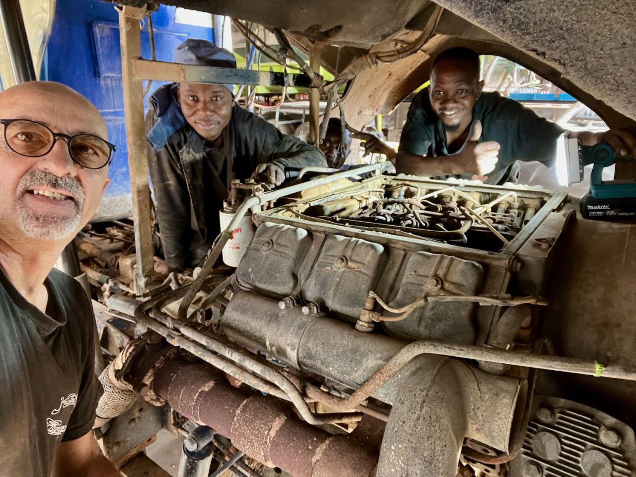 Une boite très familiale, gérée par une femme passionnante, qui a grandit dans cette entreprise, dont le père était aussi pilote automobile (formule 1 des années 60), sur un bolide de plus de 800cv conçu avec son ingénieur de frère. Leur formule 1 de l'époque trône accrochée aux poutres de l'entrepôt, prenant la poussière... Une famille au coeur en or, qui nous a laissé vivre et dormir seul dans leur entreprise pendant plusieurs jours et qui nous a réclamé quoi a l'arrivée pour toutes ces heures passées sur Cargol ? pas un centime 😳, le plaisir d'accueillir des voyageurs. No comment. Nous donnerons directement aux ouvriers, pour leur plus grande joie.