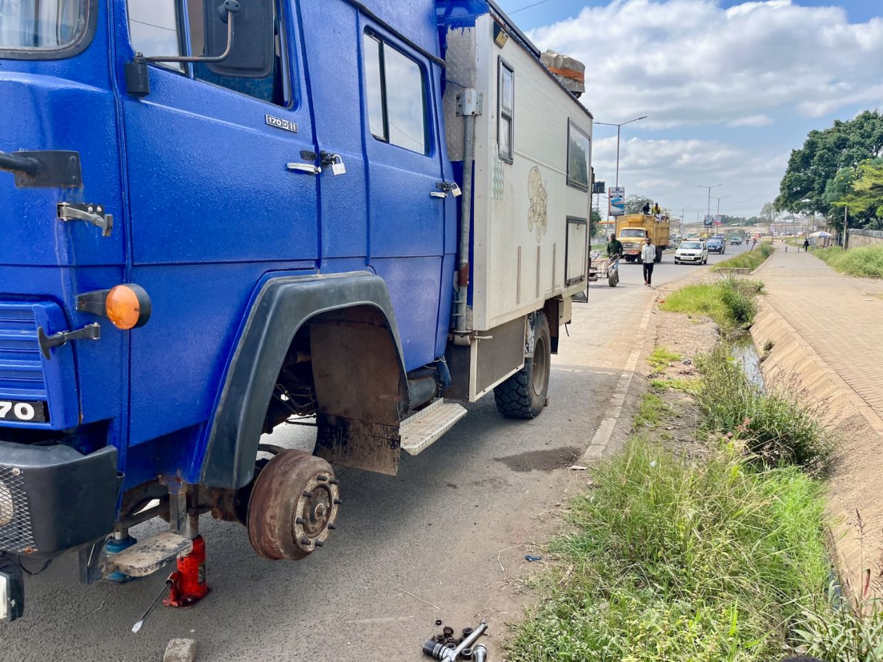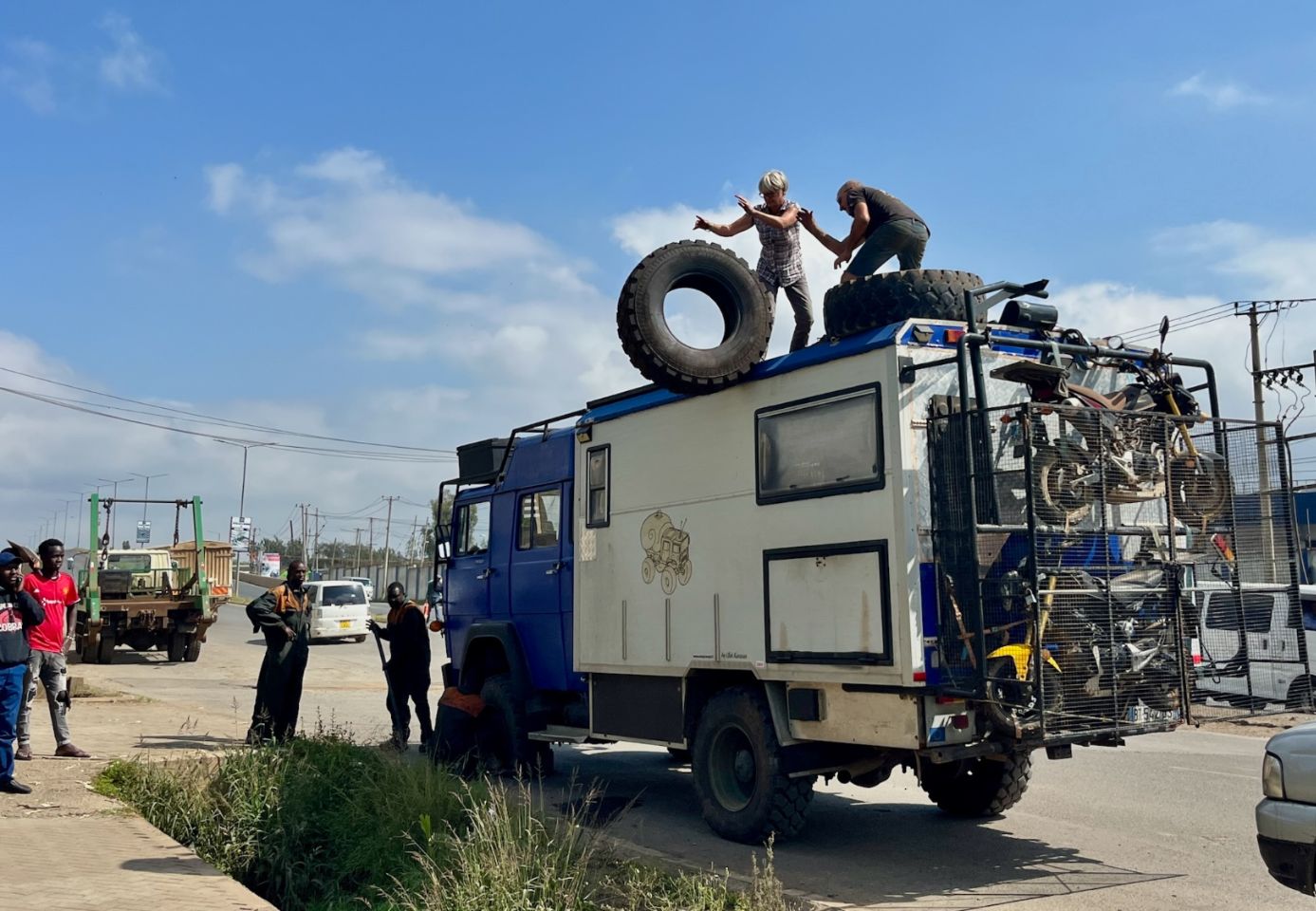 Every time we have to pick someone up at the airport, there's a ball in the pâté in the hours beforehand: Clara and Rémi in Turkey with a broken steering tie-rod 24 hours beforehand, Arthur in Oman with a diesel hose a few kilometres from the airport, and finally Delphine in Nairobi: