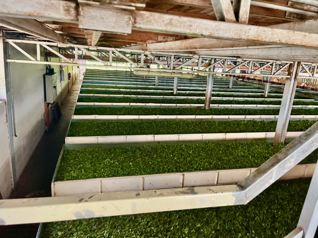 Cette pause ne dure pas bien longtemps, quelques heures tout au plus. Me voilà désormais mis en gros sac et zou dans un camion. Je suis tout secoué par les pistes qu'il emprunte. Enfin il s'arrête et me voilà désormais suspendu à un crochet qui suit une chaîne dans un bruit métallique pas des plus agréables. Padaboum, nous voilà toutes libérées du sac pour se retrouver sur d'immenses plateaux bien étalées. Nous sommes ventilées, ce qui m'assèche un peu. Il va s'en suivre une multitude de machines dans lesquelles nous passons, de rouleaux en broyeurs, pour finir une nouvelle fois dans un sauna à la vapeur de feu de bois, mais encore plus puissant celui-là . Avec tout cela j'ai perdu de ma beauté et me retrouve désormais quasi en poussière, trié suivant la taille de mes petits grains. Emballé dans des gros sac, je vais poursuivre mon voyage pour finir peut-être un jour chez vous... le thé de Kéricho.