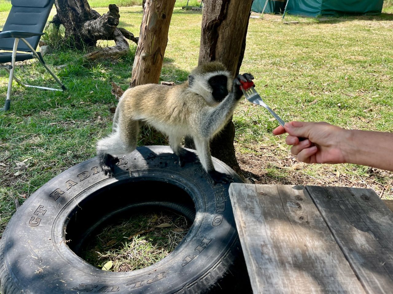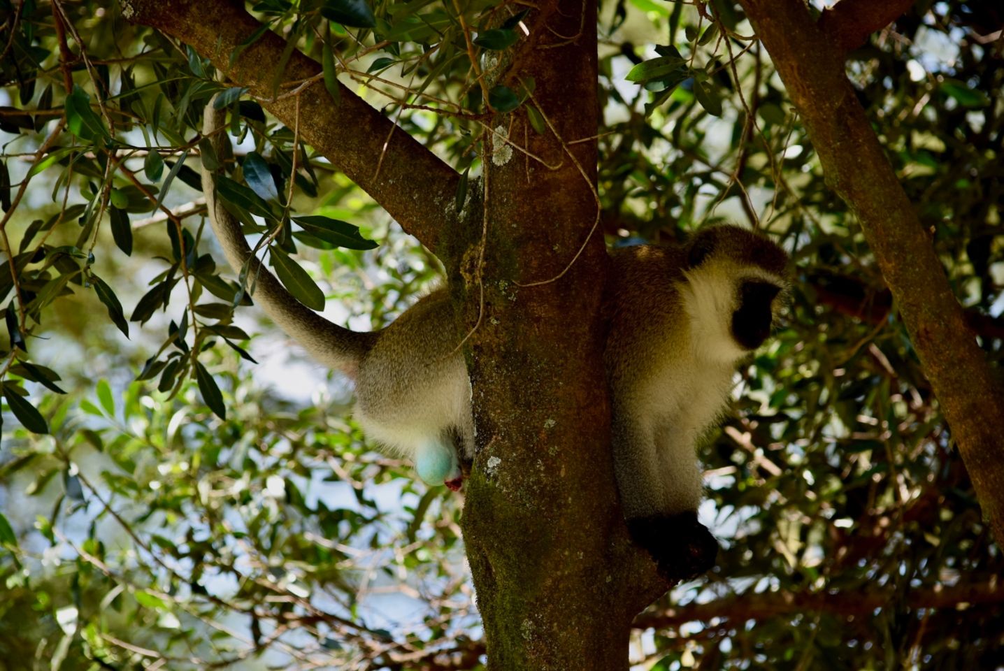 Ah, oh fait, et les couilles bleues ? Non, je ne parle pas d'une maladie africaine contractée en chemin dont mes attribus sont affectés 😂. Comment ne pas les appeler ainsi quand l'on voit les bubules de ces singes mâles. Bon leurs vrais noms c'est les Vervets, mais c'est moins fun 😂. Grosso modo tu peux pas les rater car ils sont présents un peu partout dans ces contrées.
