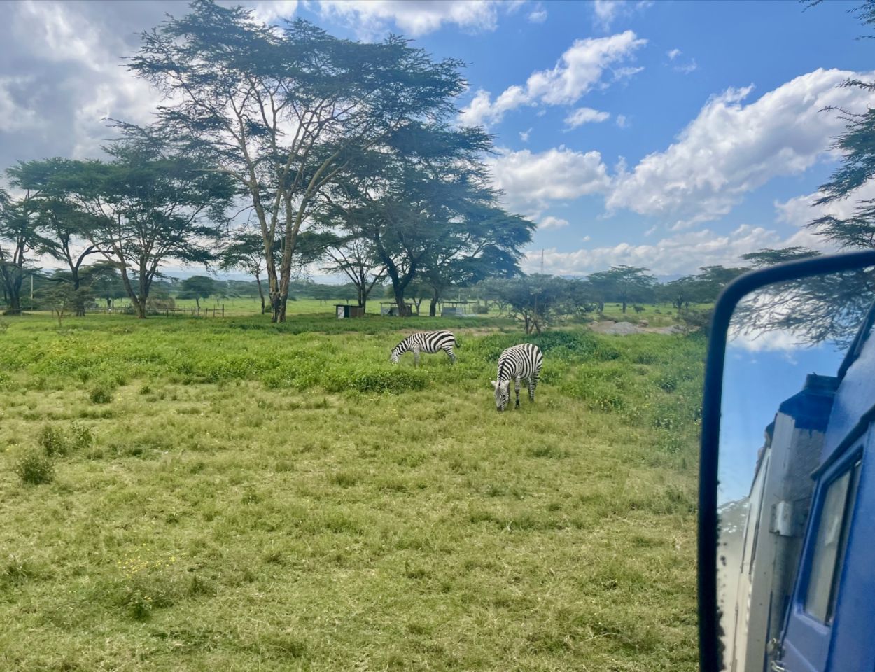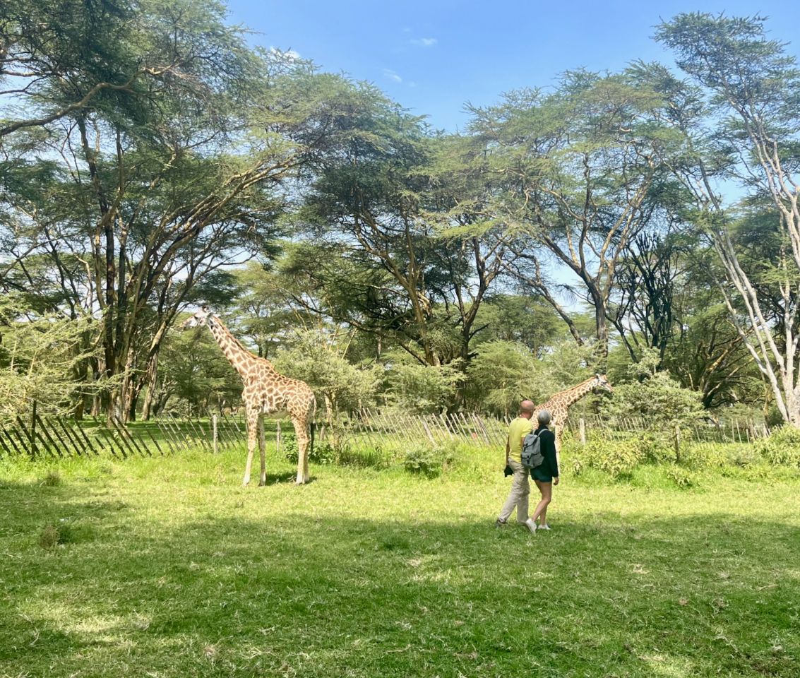 Qu'est-ce ? Un parc privé ? une réserve? un zoo sans cage ? un camping ? un restaurant ? un lieu de pêche ? un lodge ? Navaisha sanctuary farm : ben un peu tout cela en fait, un parc immense dans lequel déambulent zébres, antilopes, girafes, gnous, buffles, le tout au bord d'un immense lac : le lac Navaïsha à quelques encablures de la capitale. Ce sont les 2 derniers jours et soirées de Delphine, et elle tient à marquer le coup : direction l'un des trois lodges. La direction nous autorise à dormir dans Cargol juste à côté et à planter les tentes sur la pelouse pour Damien et Steffi qui nous accompagnent depuis la veille. Nous sommes seuls au milieu des bêtes et des arbres. Un gnou qui se trompe de chemin et qui arrive devant la terrasse. Il finira par trouver la sortie. Les zébres qui vadrouillent, les antilopes qui viennent se reposer sous le grand arbre, les girafes qui viennent taquiner la cime des arbres, 2 mâles gnous qui se disputent un petit cheptel féminin, les hyènes qui passent furtivement la nuit... et les hippos qui sortent du lac la nuit tombée et qui viennent brouter devant toi tranquilou. Paraît que cela fait drôle quand tu es dans une tente et que tu entends le raclement de la bouche de l'hippo sur l'herbe, là à quelques mètres 😂.