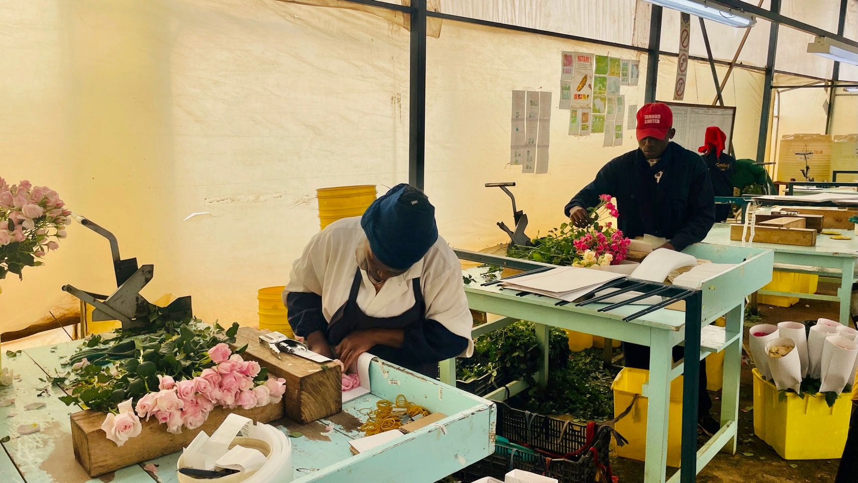 We find shelter for the evening in a clinic dispensary in the countryside, in true local fashion in the middle of these fields and greenhouses. A few phone calls later... we made an appointment to visit another rose farm the next morning đ. So we're seeing life through rose-coloured glasses!