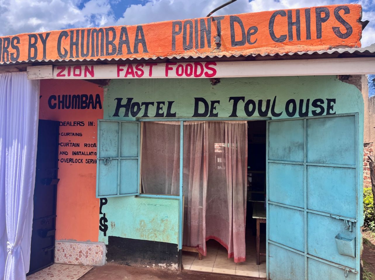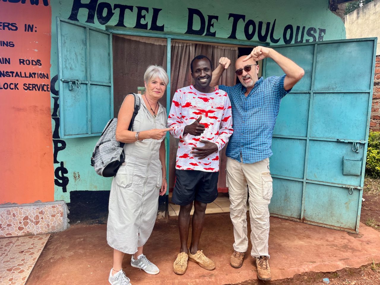 On our way to see the grandmother, we stopped at the side of the road in a micro village. 2 stalls proudly display a ‘TOULOUSE’ sign. There we find Benjamin Bitok, Wallace's cousin. A stranger to us but thousands of people know him, or at least have tried to chase him 😂. 5 times winner of the Toulouse marathon between 2007 and 2013. Nice trophy! Thanks to his races, he now runs his own business and restaurant (we call it Hotel here). An African roadside boui-boui like no other... 😍