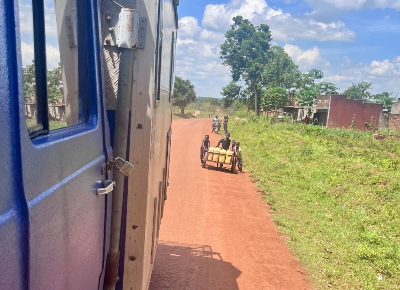 Belle occasion de traverser lentement ces régions rurales et d'y côtoyer la réalité agricole ougandaise. La vie semble un peu au ralenti, dans les champs de bananiers, maïs, cannes ou encore rizières, et vu qu'il pleut un peu tous les jours, c'est souvent les pieds dans l'eau ou dans la boue rouge ou noire bien locale. Des scènes bien africaines et de multiples sourires et bonjour sur notre passage.