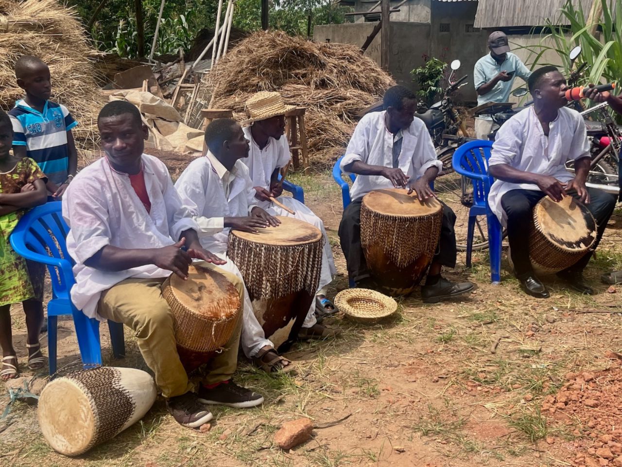 Rdv est donné à 13h pour l'arrivée du patriarche dans une salle bien locale, aménagée pour l'occasion de quelques tables, de beaucoup de chaises, d'un coin DJ et d'un petit coin service lunch. Et qui dit Afrique dit forcément musique et danse ! La troupe locale est là, et tout de suite la seule blanche de l'assistance est forcément très vite repérée. Allez hop LaLoute va remuer ton popotin ! et elle s'en sort plutôt bien ! 😂