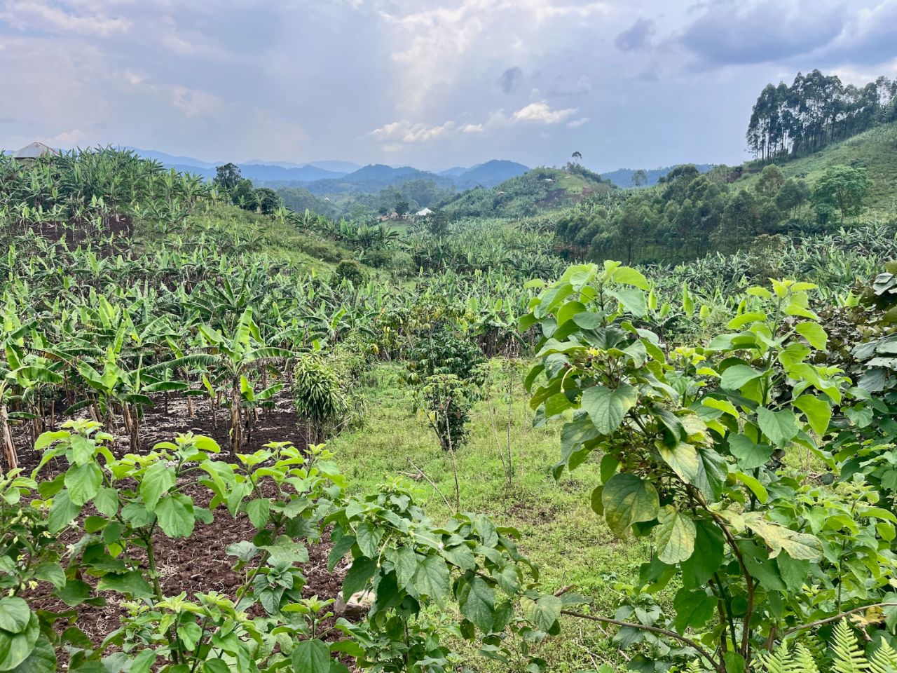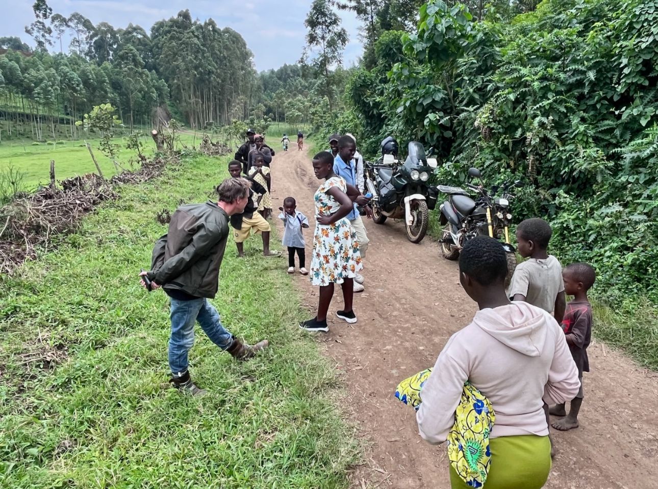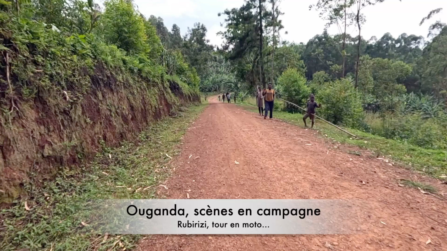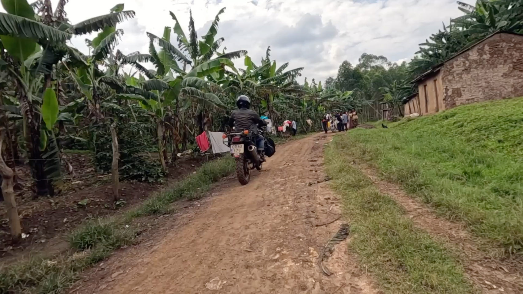 Dérouillez-vous les petites motos ! C'est en premier avec Michael, un motard en vieille AT pour les connaisseurs, que nous continuons à nous imbiber des pistes qui serpentent bananiers, cultures et collines. Saluts, sourires, regards furtifs, brefs échanges avec tous ces petits agriculteurs au gré des pistes plus ou moins scabreuses.