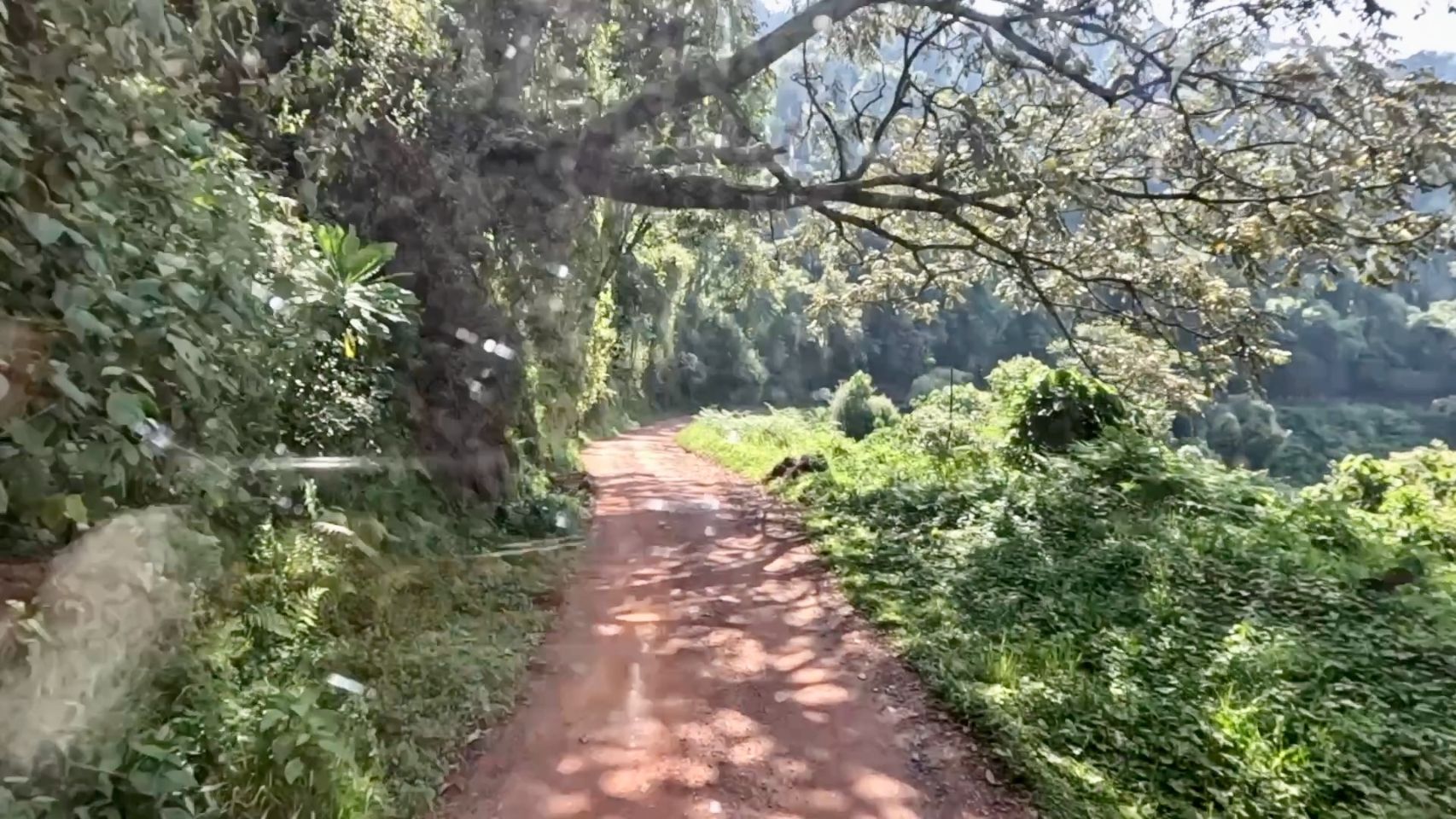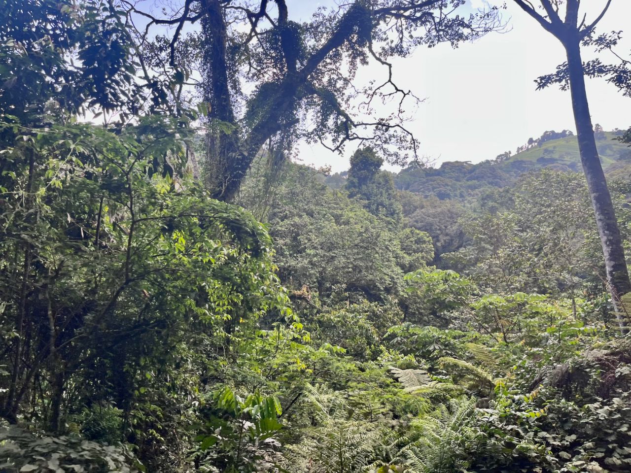The forest reigns supreme at over 2500m, the highest point of the trail. This is the kingdom of various monkeys, but above all the gorillas. Seeing one by chance is a bit of a lottery. Since we don't play games, well, we didn't see any. To get close to them, you have to agree to pay €800 per person for a permit, for a one-hour meeting supervised by rangers in the heart of this crazy forest. Quite an experience, it seems... Not for us. First of all, it would be rather out of our budget, and there's no way we're going to fatten up a government whose distribution goes through private pockets 🤨. We cross this large area by this track, crossing our fingers not to have a vehicle in front of us.