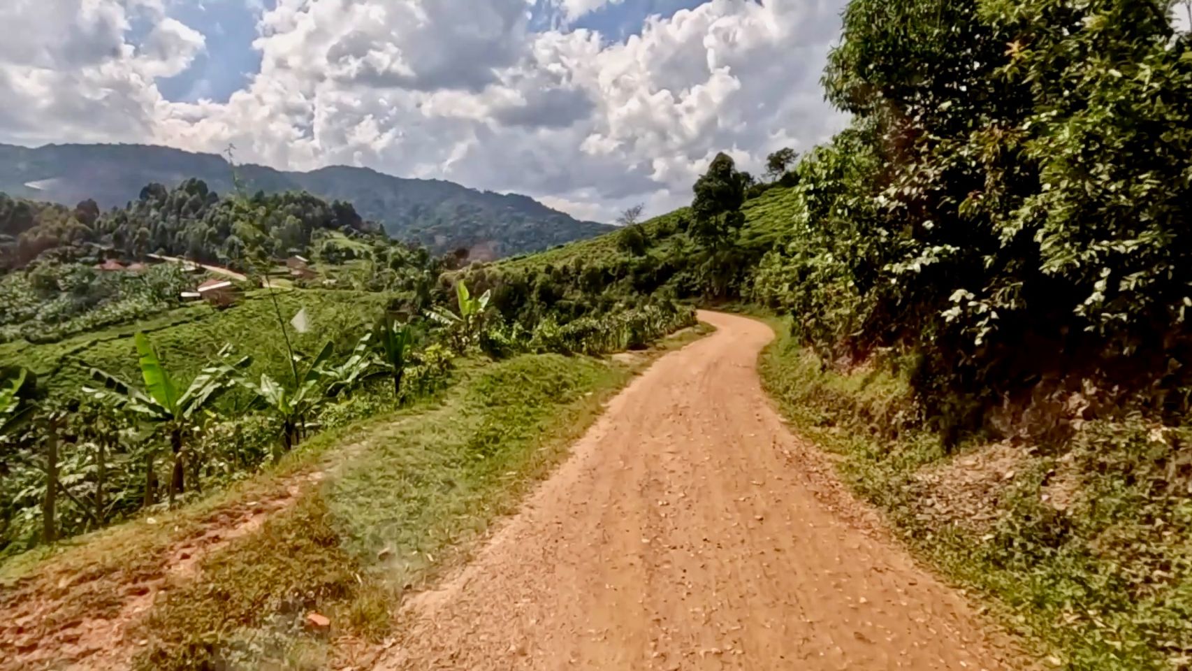 La forêt reprend ses droits jusqu'à plus de 2500m, point culminant de la piste. C'est le royaume de différents singes mais surtout des Gorilles. En voir par hasard tient d'une sacrée loterie. Vu que l'on ne joue pas, ben nous en avons pas vu. Pour les approcher, faut accepter de payer 800€ par personne le permis, pour une rencontre d'une heure encadrée par des rangers au sein de cette folle forêt. Une sacrée expérience paraît-il... Pas pour nous. Déjà ce serait plutôt hors budget, et hors de question de venir engraisser un gouvernement dont la distribution passe par des poches privées 🤨. Nous traversons cette grande zone par cette piste, croisant les doigts pour ne pas avoir un véhicule en face.