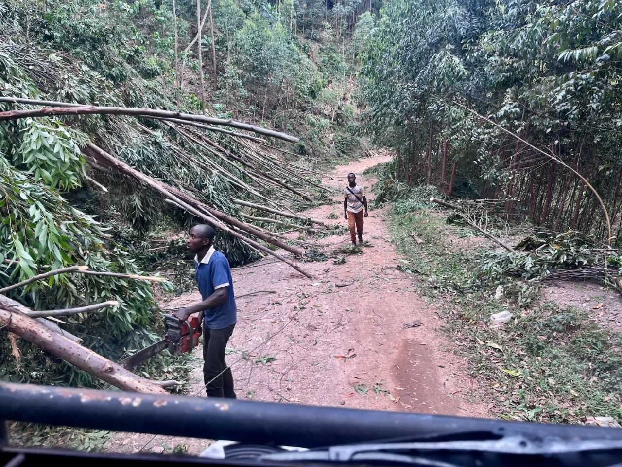 If the voices of the Lord are inscrutable, those of Bwindi seem accessible. Based on the information we've gathered, Cargol should be able to get through. We put the odds on our side by waiting for the right weather window: 3 days of dry weather, with no rain forecast, enough to dry out the earth a little before our passage. Well, we did the right thing. Narrow track, fortunately very little used by cars. 70 km in 4 hours, a decent average, the 4x4 being a little extra.