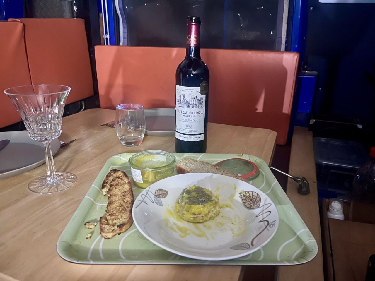 We descend from the mountains of the impenetrable Bwindi forest and return to the classic crops of the Ugandan countryside, enhanced by some lovely lakes. The region has been hilly for some time, with the land of 1000 hills just around the corner. Beautiful scenery for our 1st of the year, a very French meal brought back by Delphine in June and jealously kept in our cupboards 😜 Slurp!