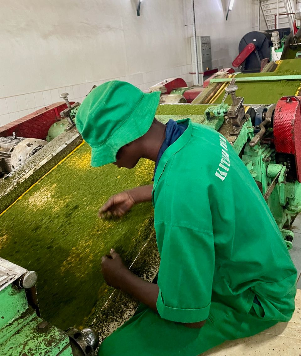 Le Rwanda, c’est un pays agricole… et pas qu’un peu  ! Côté thé, c’est l’effusion d’infusions. D’ailleurs, on pourrait croire que les usines de thé ici ont toutes été clonées dans une même feuille de route : des petits camions bringuebalants ramassent les sacs de feuilles livrés par les cueilleurs sur des pistes cabossées comme des dents de sagesse, puis les amènent à l’usine. Là , les sacs s’accrochent à des rails, ambiance montagne russe version thé, pour être balancés dans des séchoirs géants. Les feuilles sont alors déshumidifiées (on leur retire toute l’eau, mais pas leur caractère), avant d’entamer un course digne d’un parcours du combattant : triées, écrasées, broyées, chauffées… bref, elles en voient de toutes les températures avant de finir en sachet.