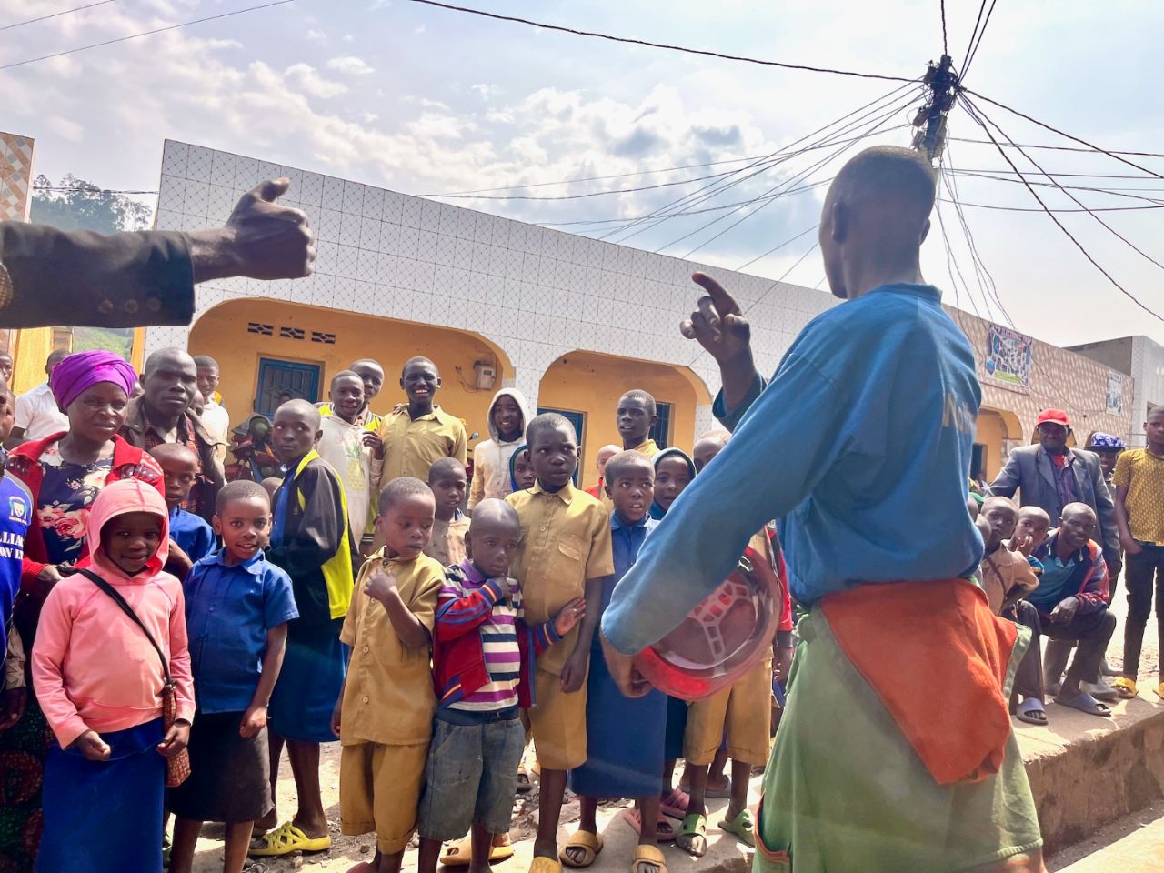 Un village qui ressemble plus un hameau. Nous cherchons le bar, ou plutôt le baraquement qui en fait office. Une bonne bière... Nous déclinons l'invitation à s'asseoir à l'intérieur sur quelques planches posées sur le sol en terre, dans la pénombre encadrée par des murs mi-terre mi-tôle ondulée. À peine assis dehors, la population locale se rassemble. On dirait une classe en sortie scolaire venue observer deux espèces rares. Les enfants nous dévisagent avec des yeux plus ronds que leurs ballons dégonflés. Les adultes sourient. Et nous, on rit avec eux, pas d’eux.