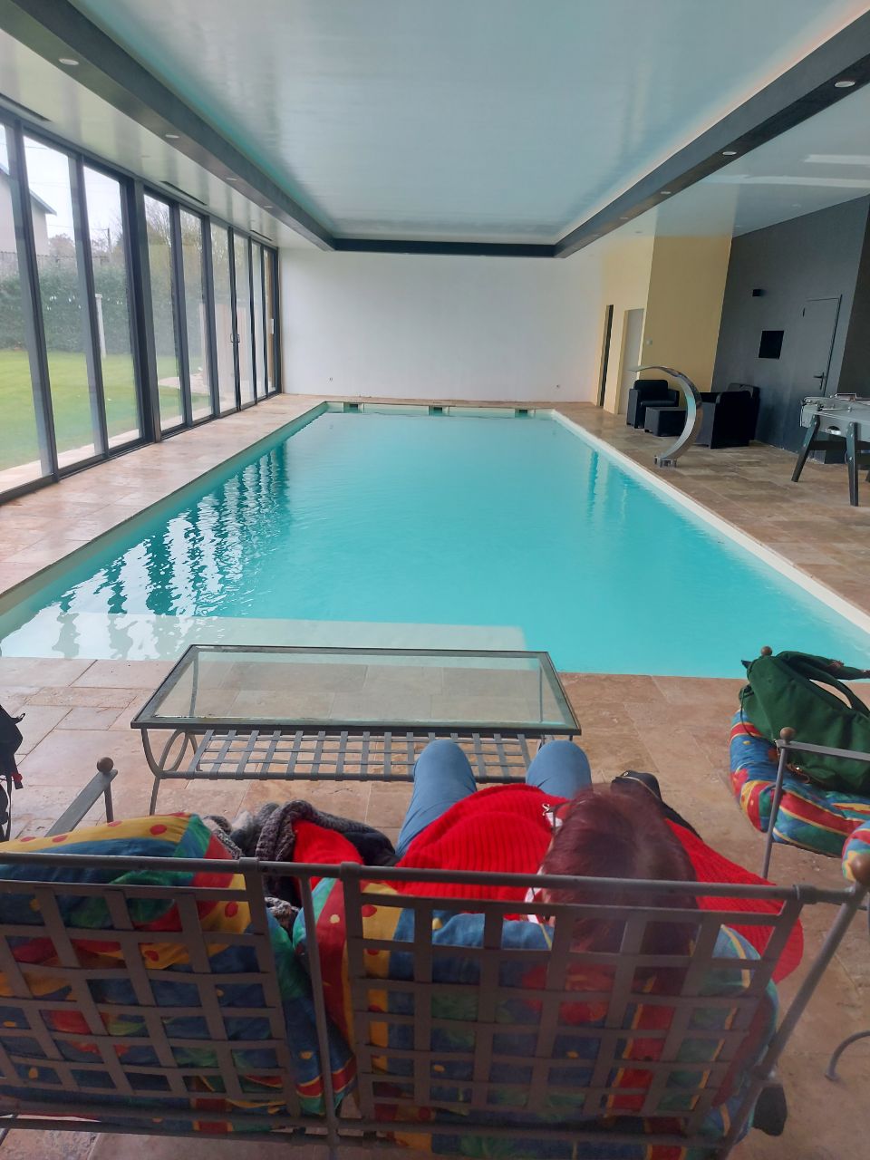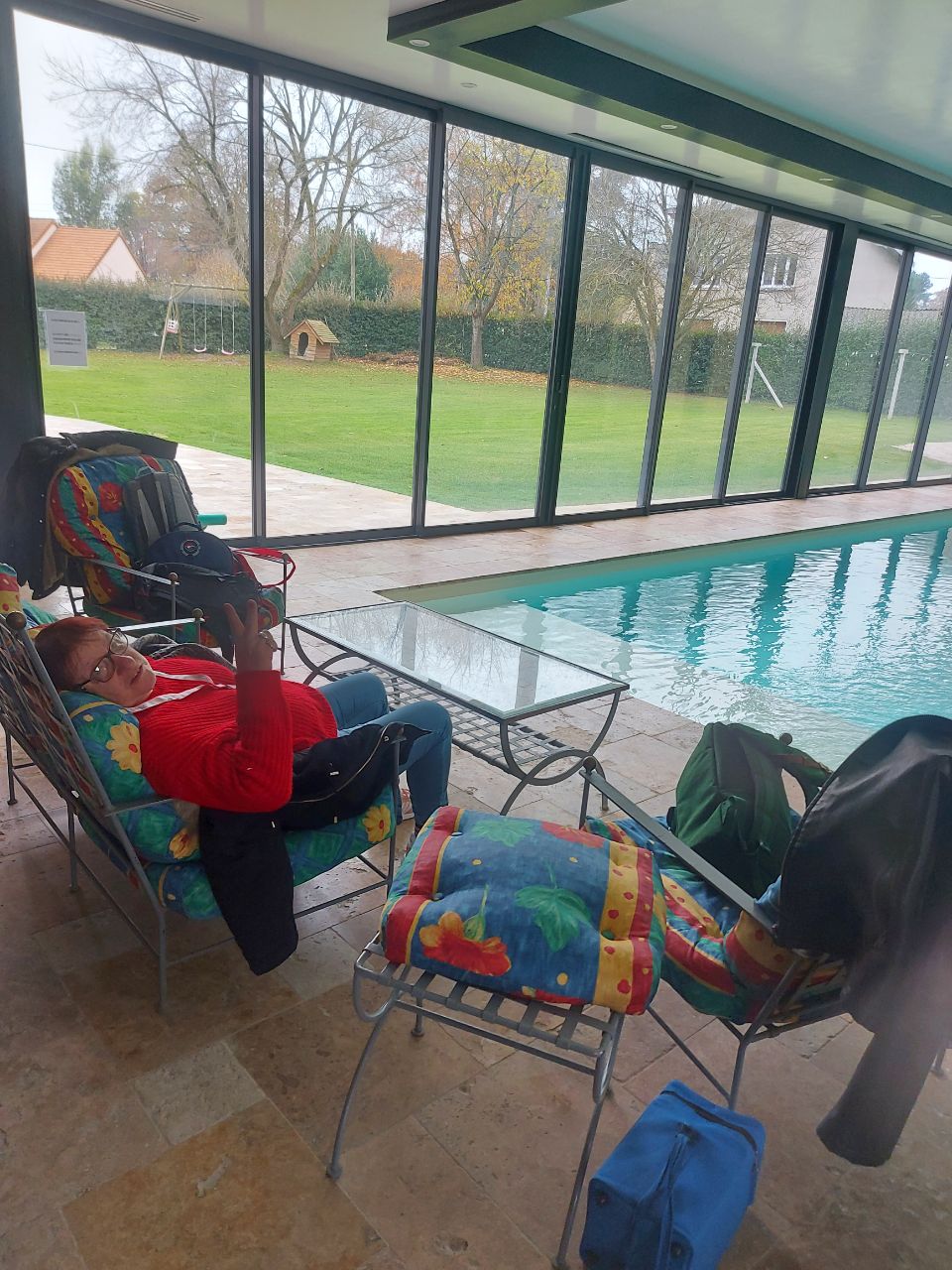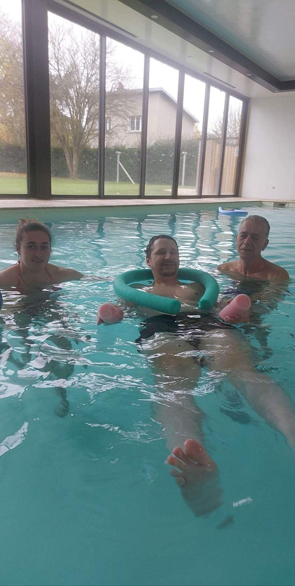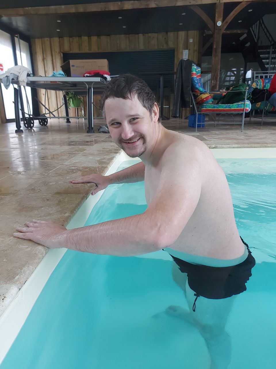 Après l'effort le réconfort.. tous à la piscine ! Joël en maillot 🏊♂️