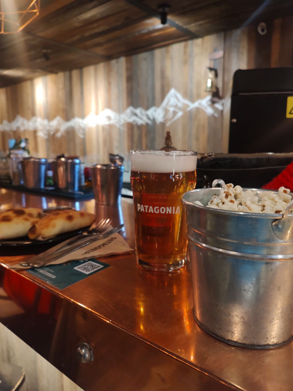 Después de toda la caminata, me provocó una cerveza así que entre a un barcito Patagonia y me tomé una con unas empanadas.