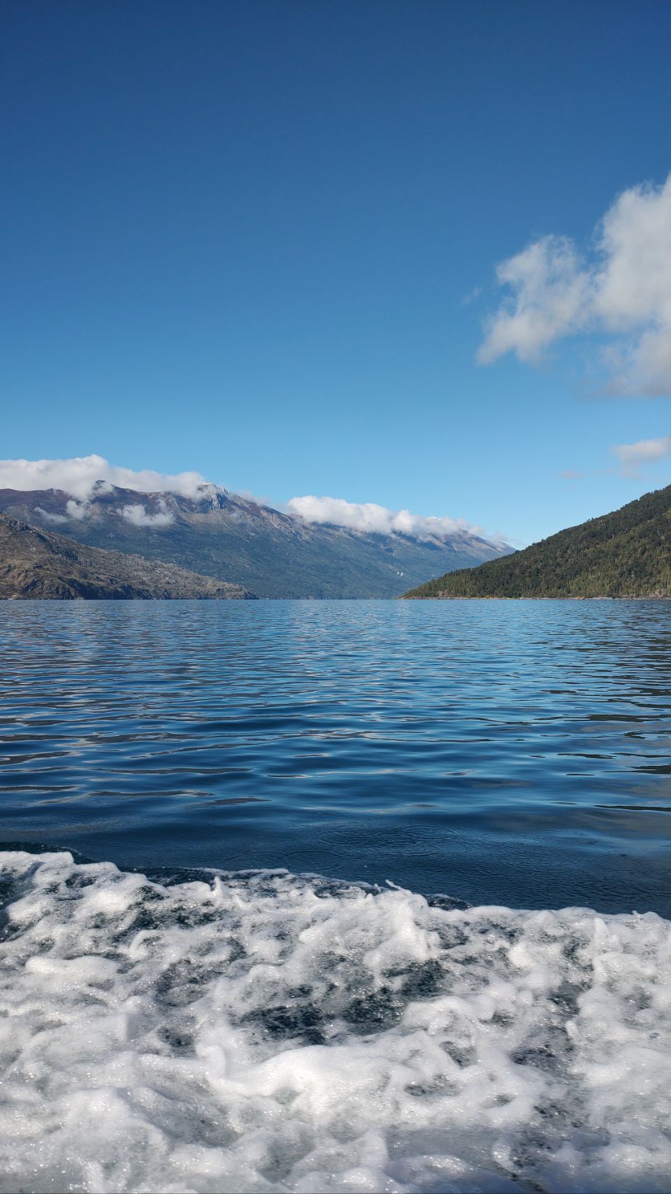 Llegué a la entrada del parque, no había nadie así que no se si no se paga nada o no había quien me cobrara. Seguí caminando hasta el lago. La idea era tomarme unos mates 🧉 allí y volver a ver el pueblito y nada más, y resulta que ví una casilla donde vendían paseos en bote por el lago. Dije voy a preguntar solo por curiosidad. Yo esperando que me dieran un golpe como en Calafate (que todo vale +200usd) y me dicen que el paseo que incluye la navegación y la caminata hasta la frontera con Chile 60usd dije kheeeee deme dos. No dos, pero si lo compré sin siquiera pensarlo. Porque además el día estaba soleado y sin viento.