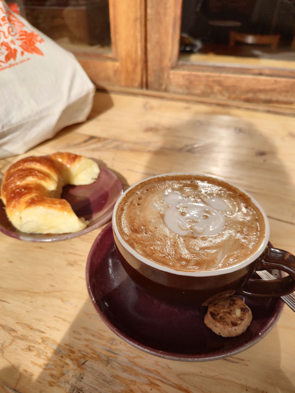 Me tomé mi acostumbrado café con leche vegetal y una medialuna.
