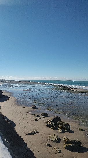 Cómo en las Grutas baja y sube mucho la marea, en ese momento el mar estaba súper leeeejos! Entonces era muy sencillo para caminar y con mucho espacio de costa!