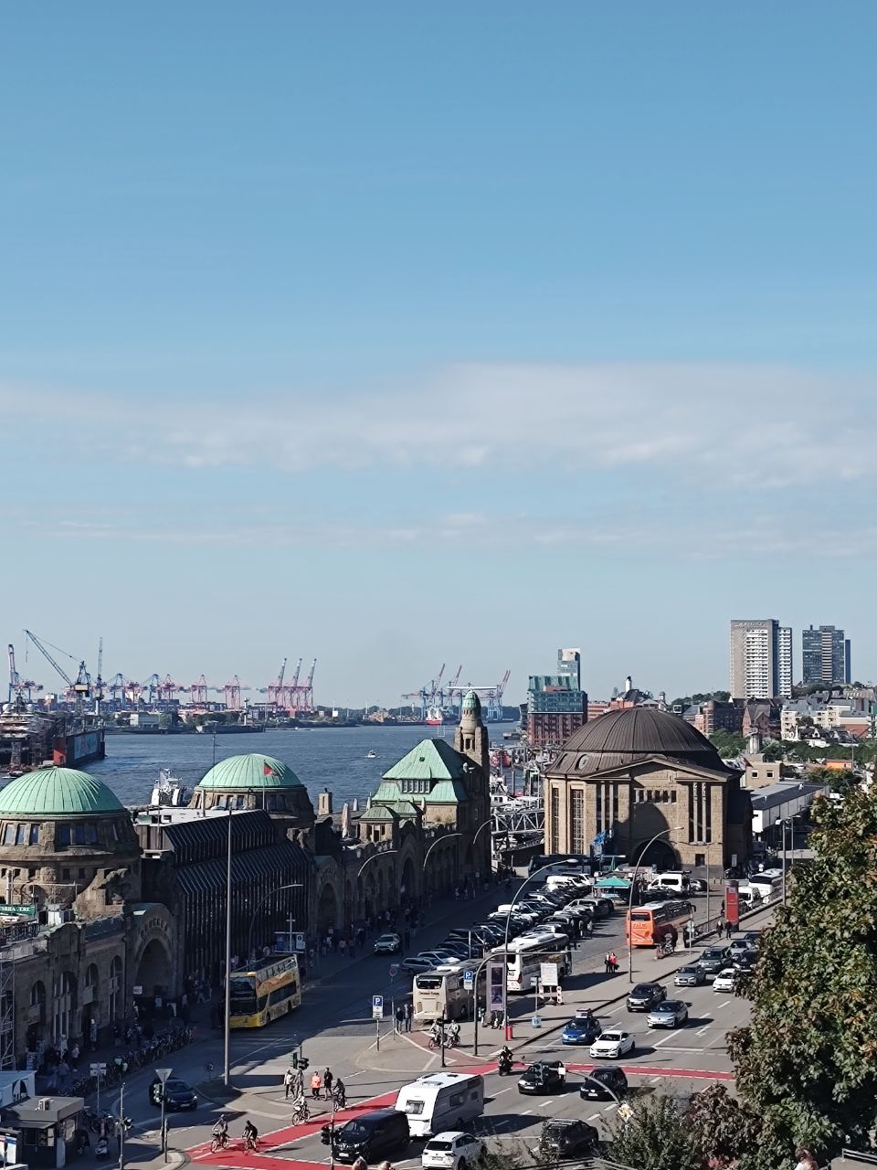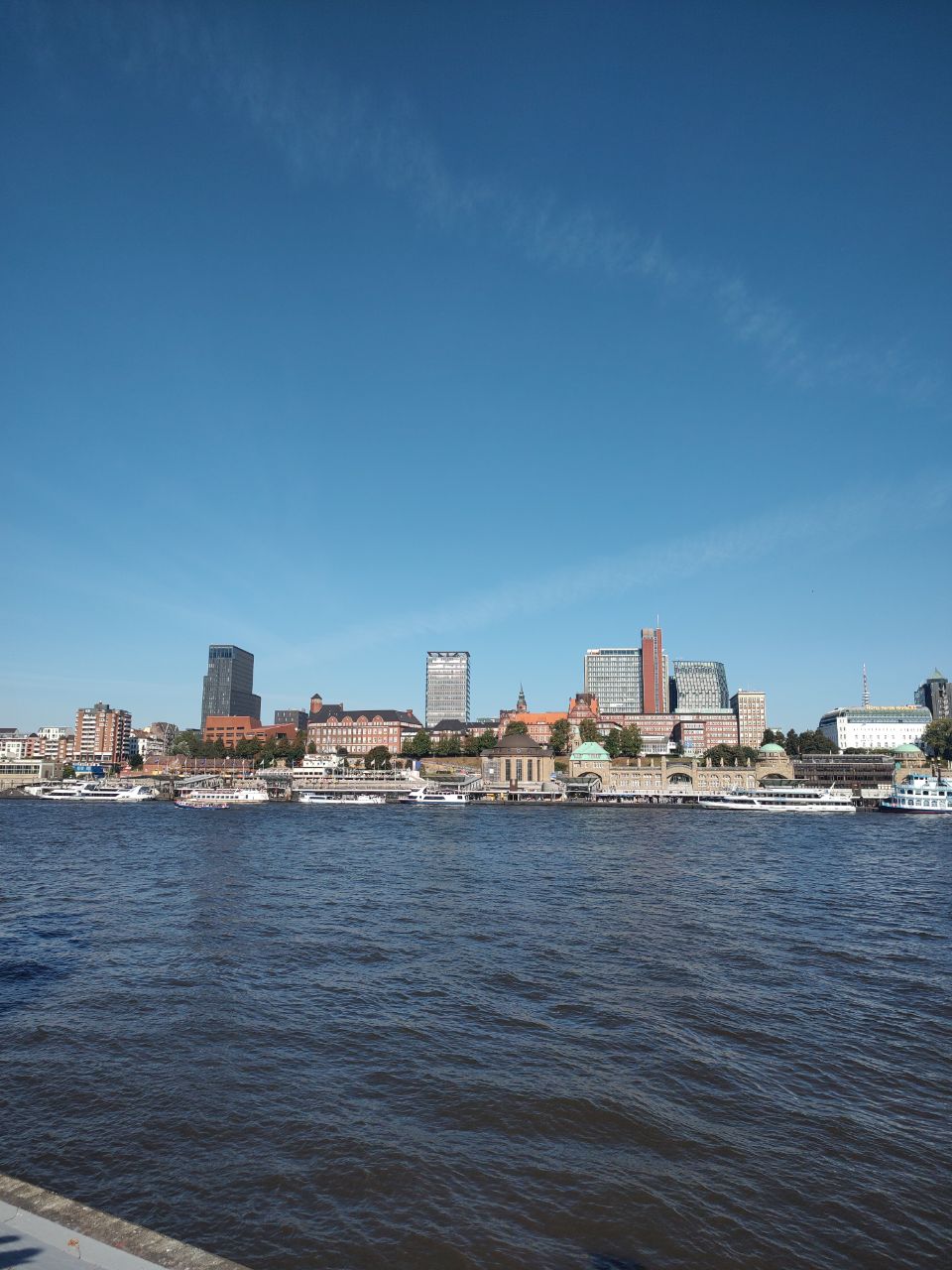 Es lindo del otro lado del rio porque se ve la postal de todo Hamburgo. Sus edificios. Muchos viejos y arriba re construidos post guerra, otros nuevos, otros viejos, y muchas iglesias. Disfruté mucho la vista.