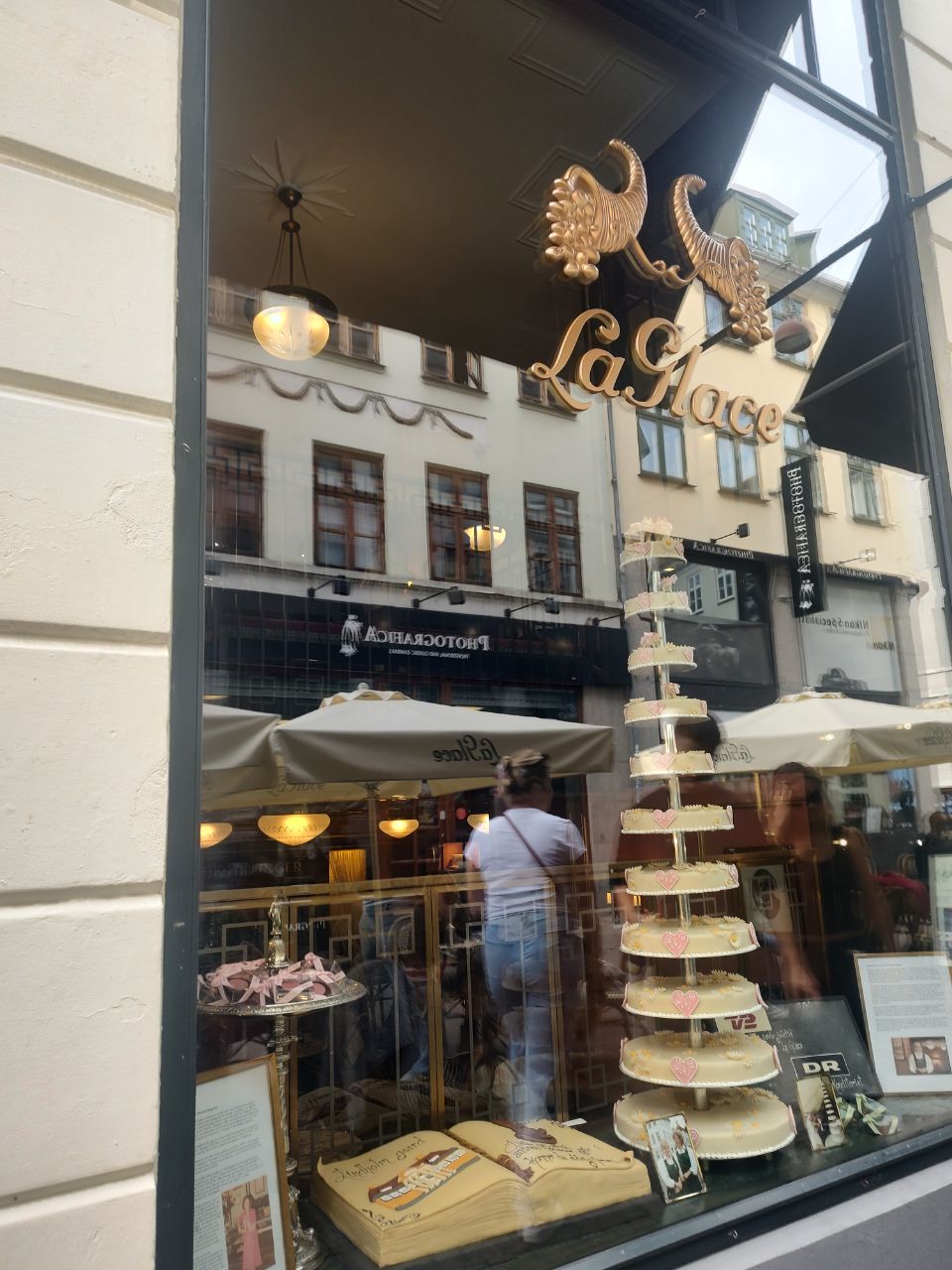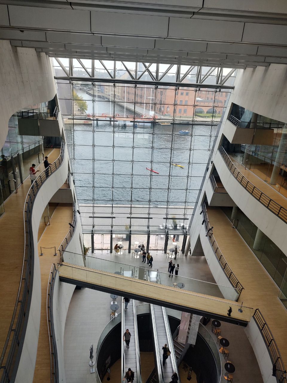 En algún momento que no registré y mi mapa tampoco, pero fue más o menos por aquí, pasamos por Det Kgl. Bibliotek, The Royal Library. Ese edificio está increíble. La arquitectura por fuera y las instalaciones por dentro. Entiendo que para daneses es gratuita y abierta. Fuimos al baño y pasamos por una librería que tenía libros lindos pero en danés y para variar no dejaban entrar perritos así que nos fuimos rápido. Y los jardines de.... No me acuerdo, que también estaban bellísimos! Lo encontré: Garden of the Royal Library - Det Kongelige Biblioteks Have. Entendí que mucha gente va y se casa allí, incluyendo mis amigos. Y es que si ven ese jardin, es bellísimo.