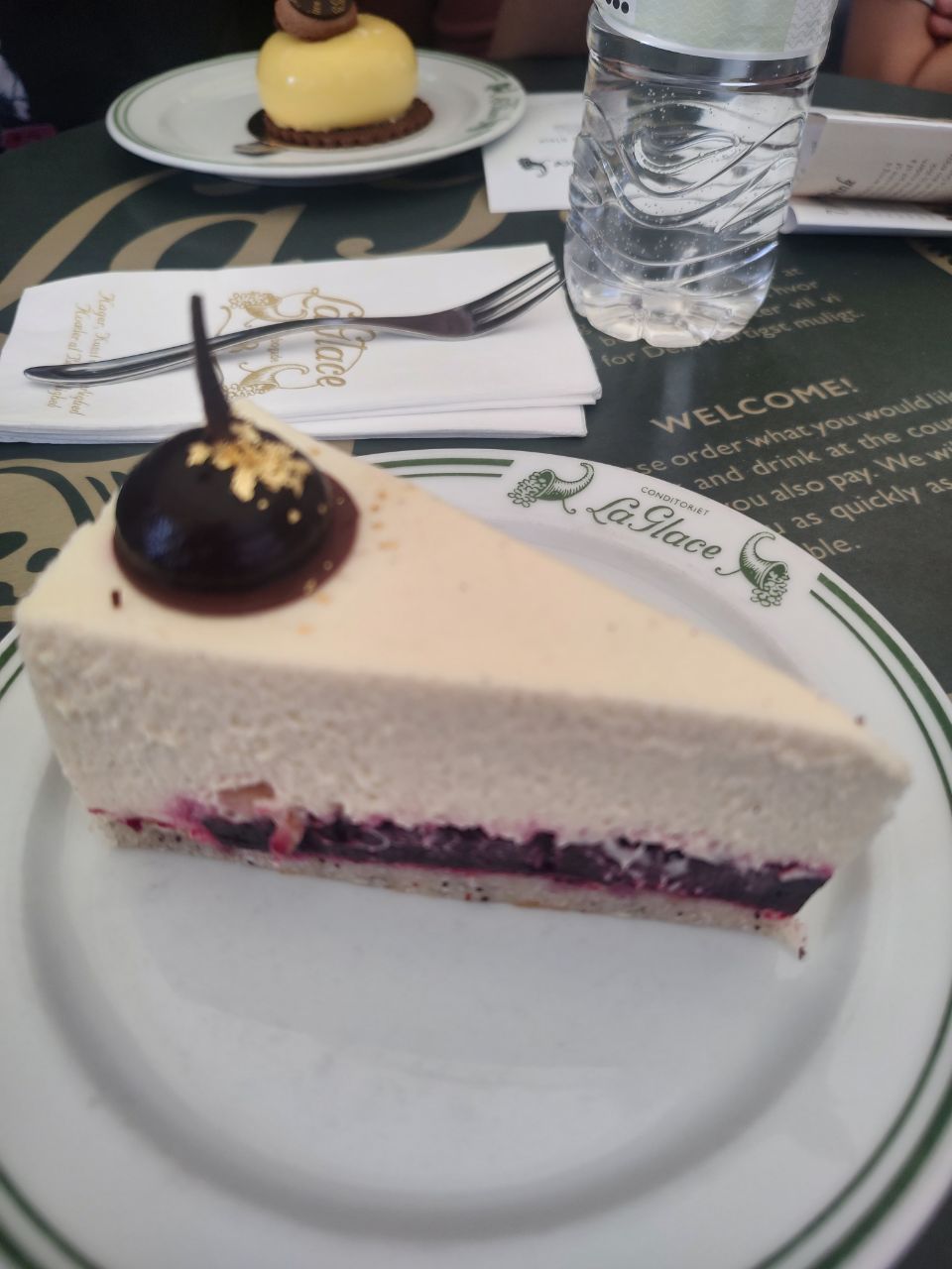 Y como almorzar no fuera suficiente, me llevaron a comer a un lugar llamado "La Glace". Les pido a quien me lea que se hagan el favor de pasar por ese lugar. Es magnífico. Más allá de que el postre fue increíble, es la atención, la presentación, el lugar, todo. Sin mencionar que lograron un postre sin gluten y sin lactosa y ser bello.