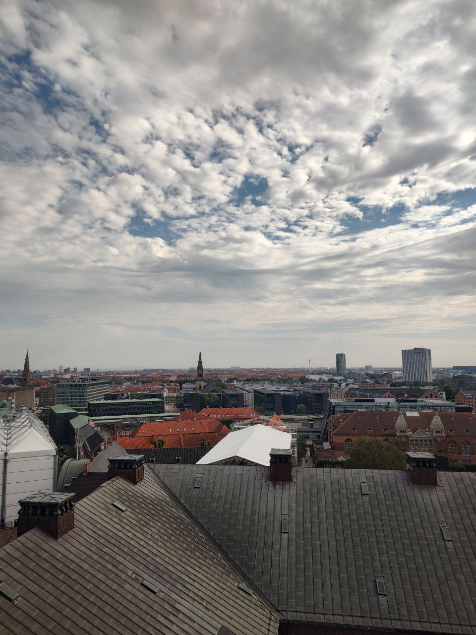 La primera parada que hicimos fue el Rundetaan o the round tower. Es un observatorio donde puedes subir y se ve mucho mucho Copenhaguen. Los edificios y hasta Suecia un poquito. Para subir hay que hacer fila usualmente, que puede ser muy corta o muy larga. No me acuerdo si había que pagar (iba dormida y mi amigo y su esposa hacían gestiones que yo ni me daba cuenta porque iba viendo pa'rriba edificios).