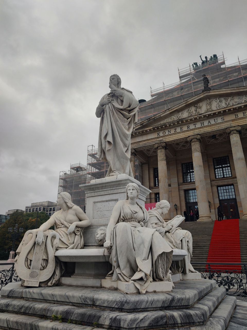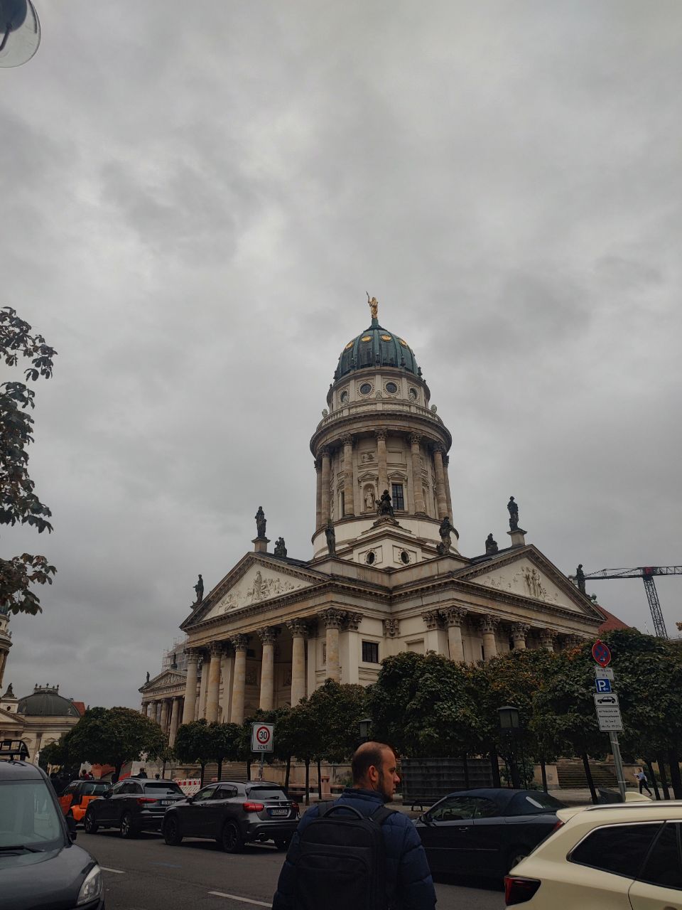 Vimos otra iglesia muy famosa, esta era católica (la anterior era ortodoxa, creo). Pasamos luego por dos iglesias que ya no recuerdo bien la historia pero las construyeron casi iguales. Una para una comunidad y otra para otra. Y los arquitectos se peleaban por cuál iba a ser más alta, y aunque acordaron que eran de la misma altura, la que tiene la pluma 🪶 ganó (son la Neue Kirche y la Französischer Dom).