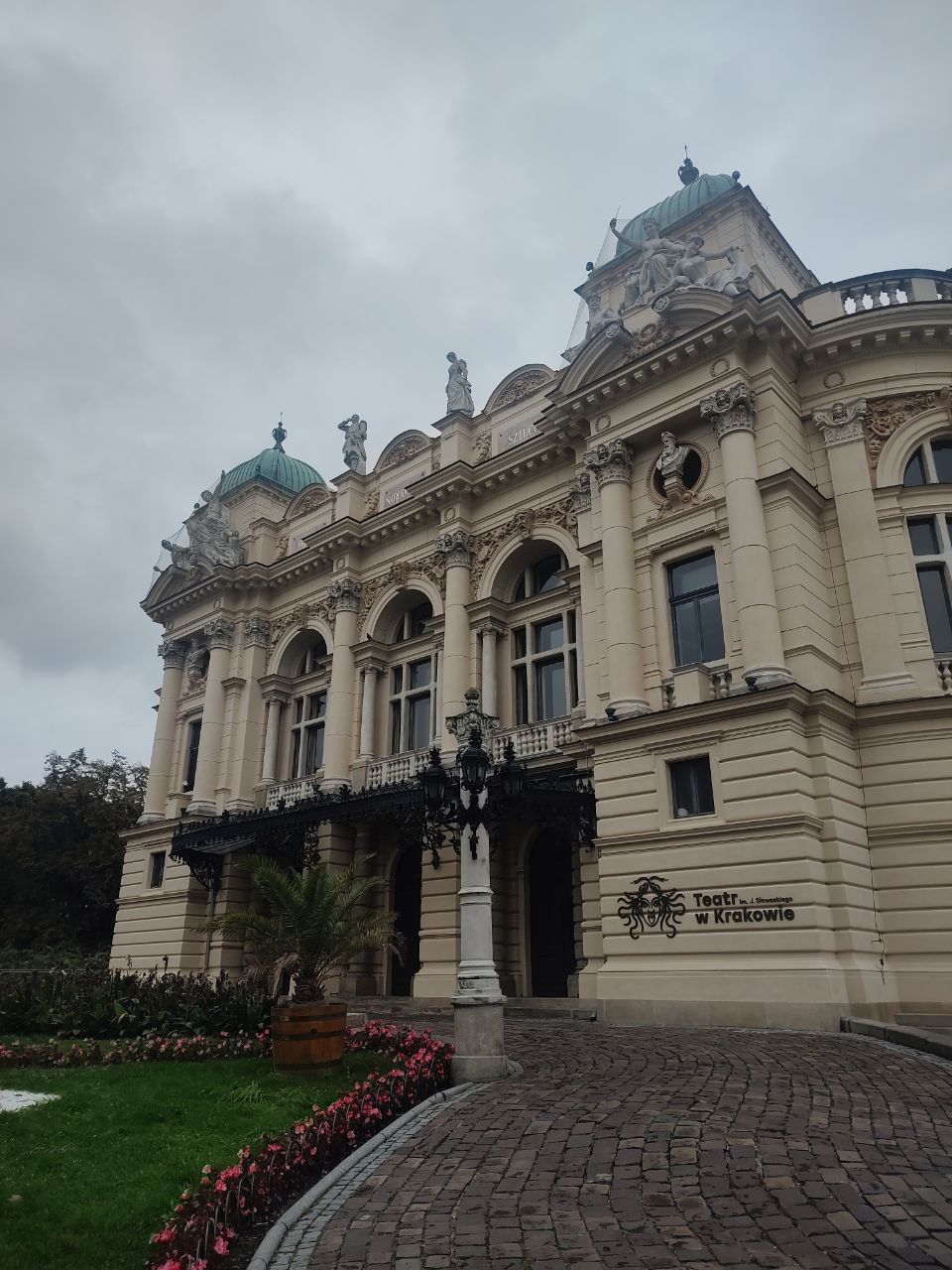 Después seguimos hacia el teatro de Cracovia y me hizo recordar mucho de la arquitectura en Berlín. Simple, sin demasiados adornos, pero con el techado color verde y un tanto ostentoso.