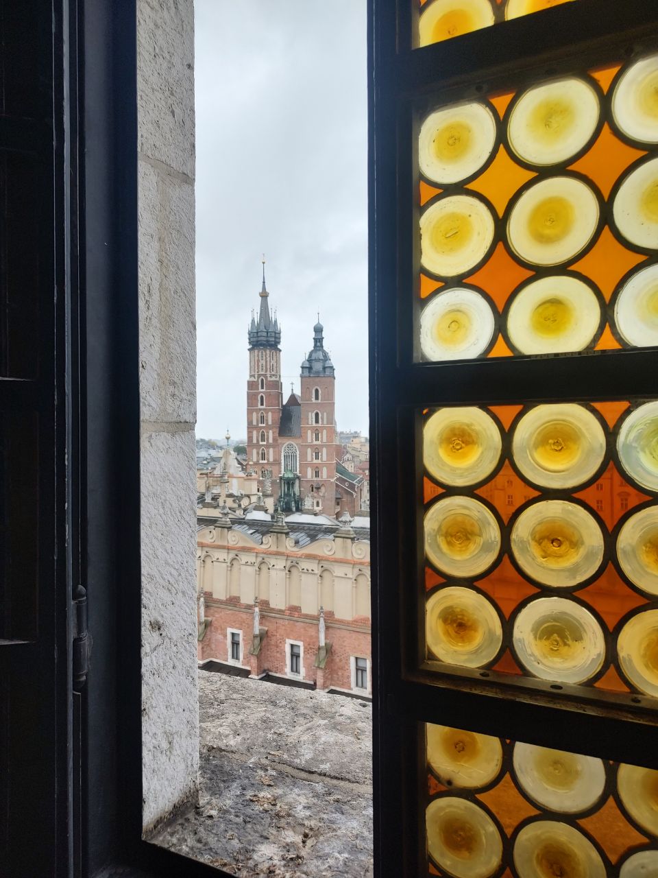 En ese rato, mis amigas belgas se hicieron amigas de un portugués así que el grupo crecía e íbamos hablando de todo. En un momento paramos en frente del Okno Papieskie y allí aprendí que el Papa Juan Pablo II era de un pueblo muy cerca de Cracovia. Quedé asombrada pues aunque estaba en Cracovia, no había recapitulando sobre ello. Entiendo que allí hay una universidad o algo relacionado y en frente estaba la basílica llamada San Francisco de Asis. No entré pero me quedó la idea de querer hacerlo, así que me lo anoté.