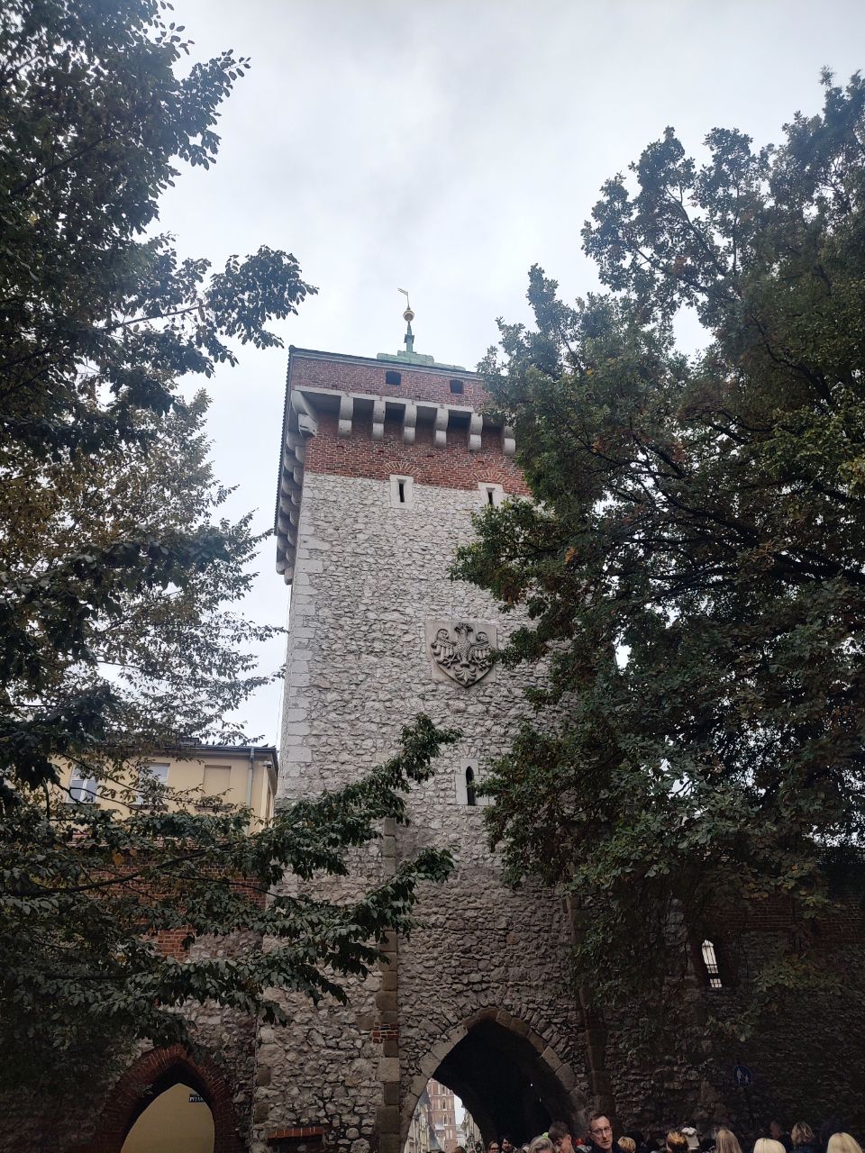 Ya el recorrido iba terminando en Brama Wazów. Es un castillo inmenso puesto arriba de la única colina que tiene Cracovia porque del resto es bastante plano. Maciej nos contó de la historia de ese edificio. Subimos la colina y llegamos a la entrada. Dentro funciona un museo que por cierto tenía una larga fila para entrar. Nos explicó que nunca estuvo muy definido el estilo del castillo pues pasaron muchos arquitectos por el mismo, poniéndole su propia impronta, y por eso tiene tantas variaciones en sus techos. Nos invitó a qué volviéramos a ver todo el predio y nos explicó un poco sobre el otro lado donde ya se ve el río. Allí terminó el tour y Maciej se despidió de nosotros.