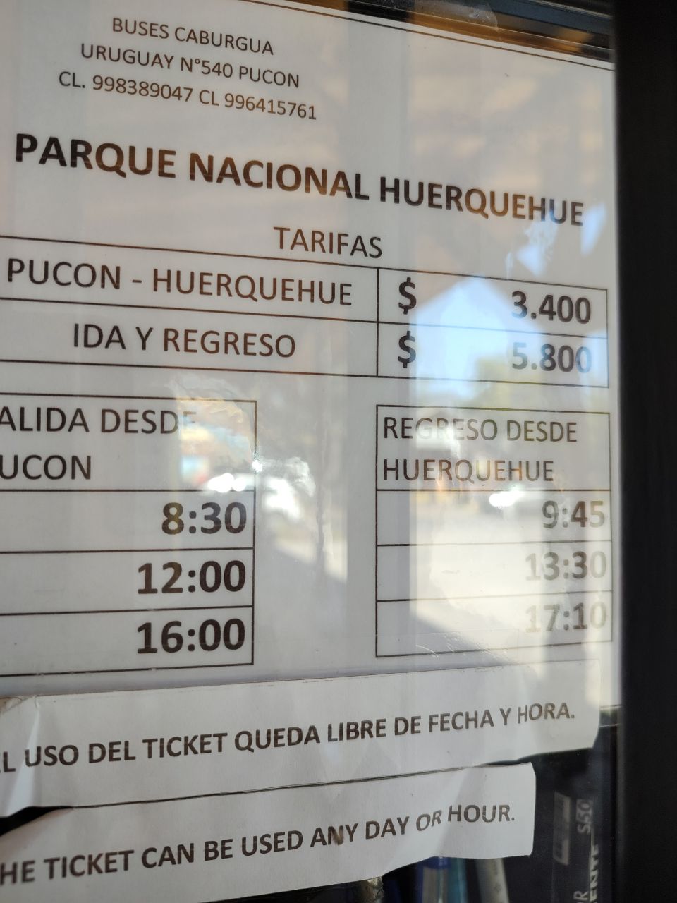 El autobús se toma en la terminal de buses Caburgua. Salí en el bus de las 8.30 AM, ya que entre distancias y paradas, comienzas el circuito a las 10am.