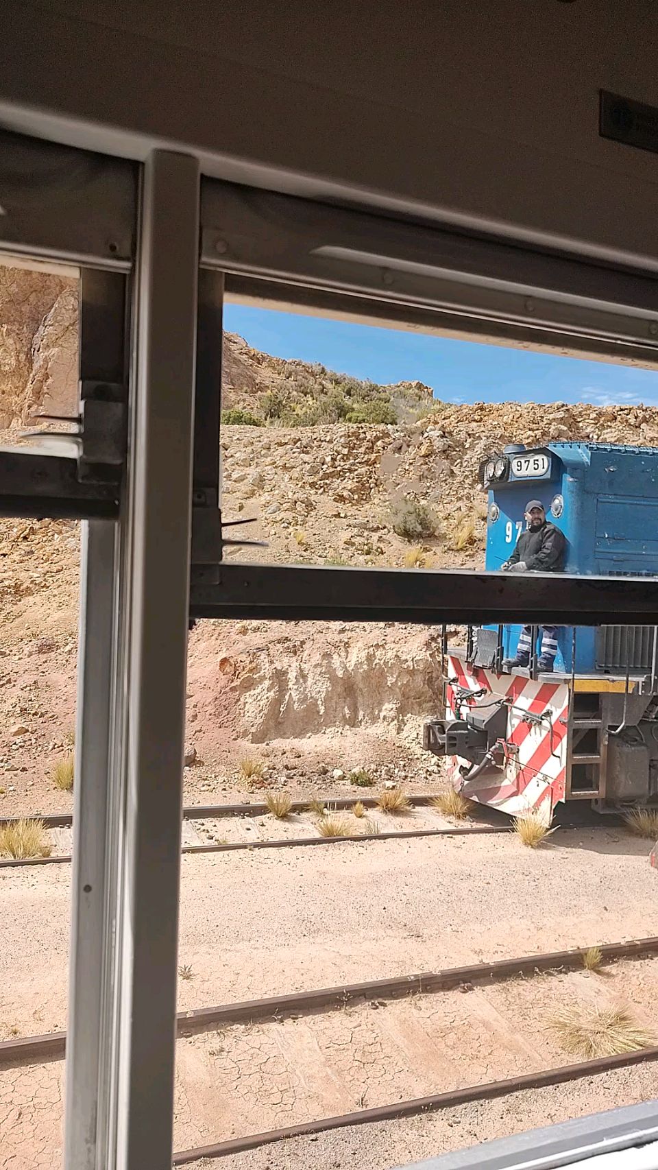 Nuestro guía nos contó la historia al respecto del tren tal como que es el tercero más alto del mundo, se usaba para transporte de personas hasta que lo suspendieron y quedó únicamente para el transporte de minerales hacia Chile (ruta de exportación).