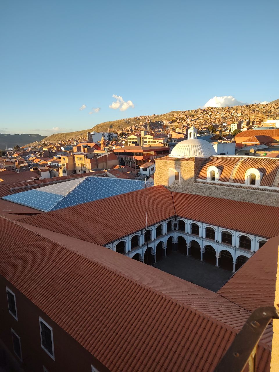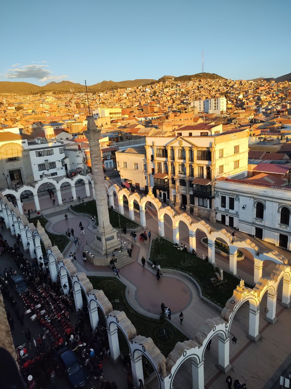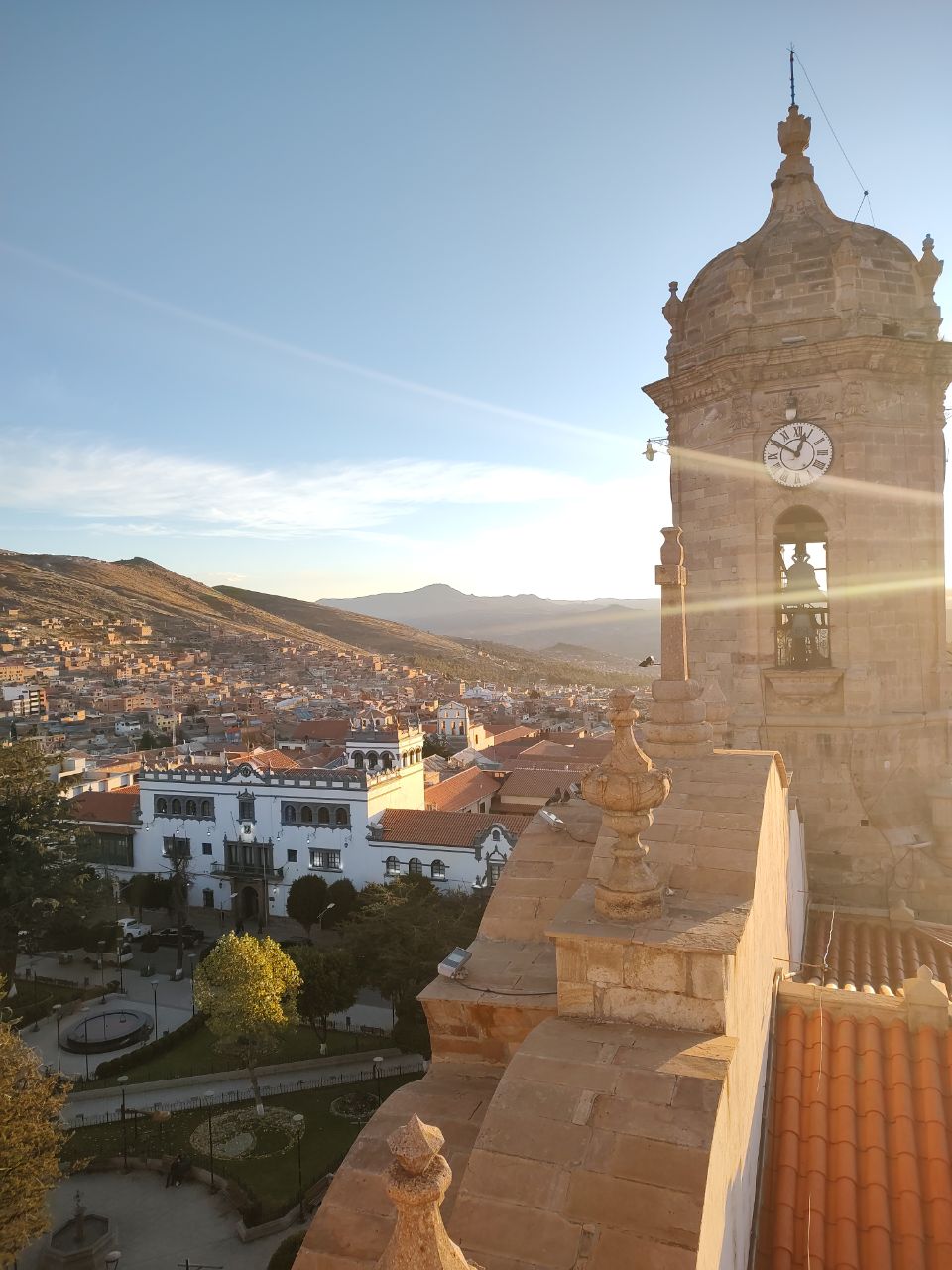 Después por la tarde fui a la catedral. Una catedral que se vino abajo y tuvieron que reconstruirla, y tiene muchas piezas de papel de oro, así como cuadros que datan de muchos siglos. Se puede subir al campanario, dónde además de la vista hermosa de todo Potosí, es lindo ver las tres campanas hechas completamente de plata. Una muy hermosa visita.