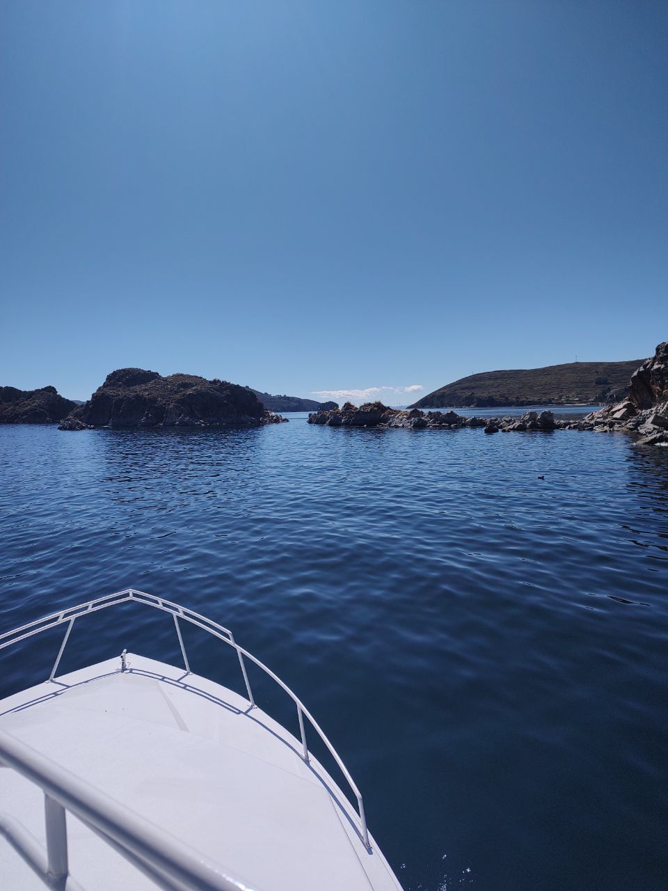 Nos subimos a una lancha 🚤 y aunque hacía frío, preferí ir afuera para observar el paisaje. Es impresionante el lago Titicaca pues realmente es enorme (no por nada es el lago navegable más alto del 🌎)