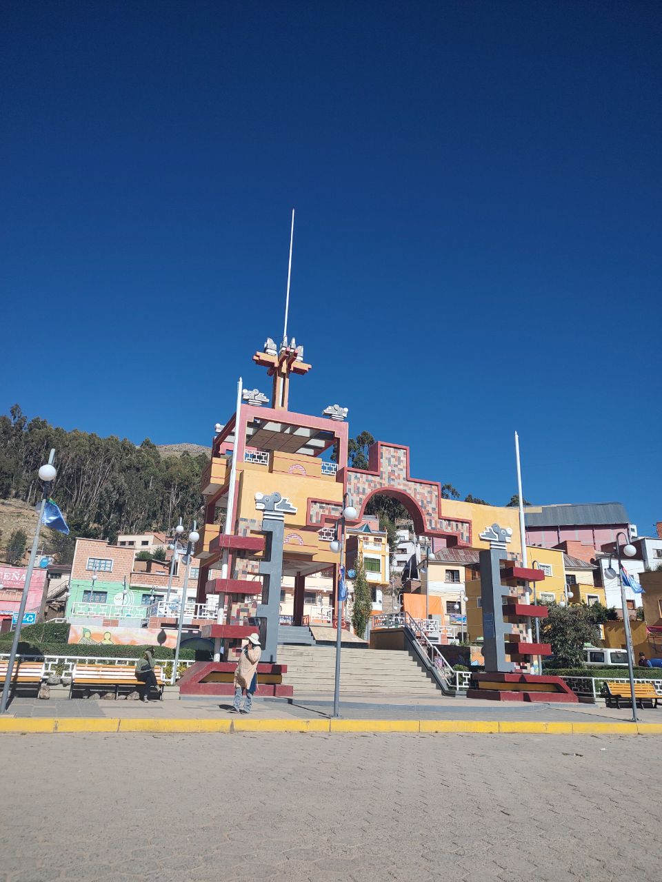 Arribamos a Copacabana y tenía una hora libre, así que fui a la iglesia, recorrí la calle de las artesanías y me compré un jugo.