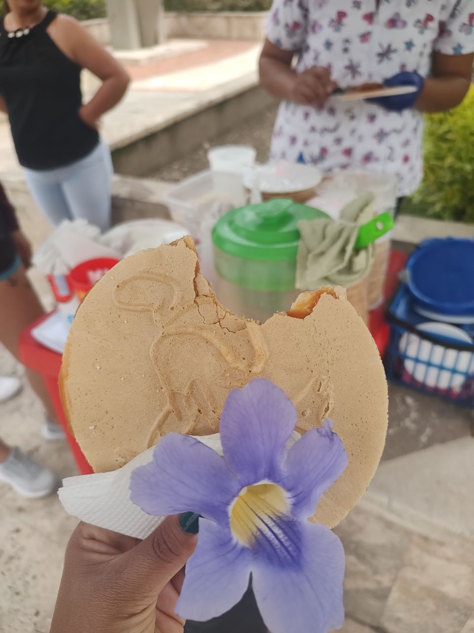 Fui a la iglesia de Miranda. Muy bonita, llama la atención porque se ve desde muchos lugares cuando una va en carretera. Es blanca y muy alta! La visité y a la salida encontré una señora que vende obleas, así que me comí mi tradicional oblea solo con arequipe.