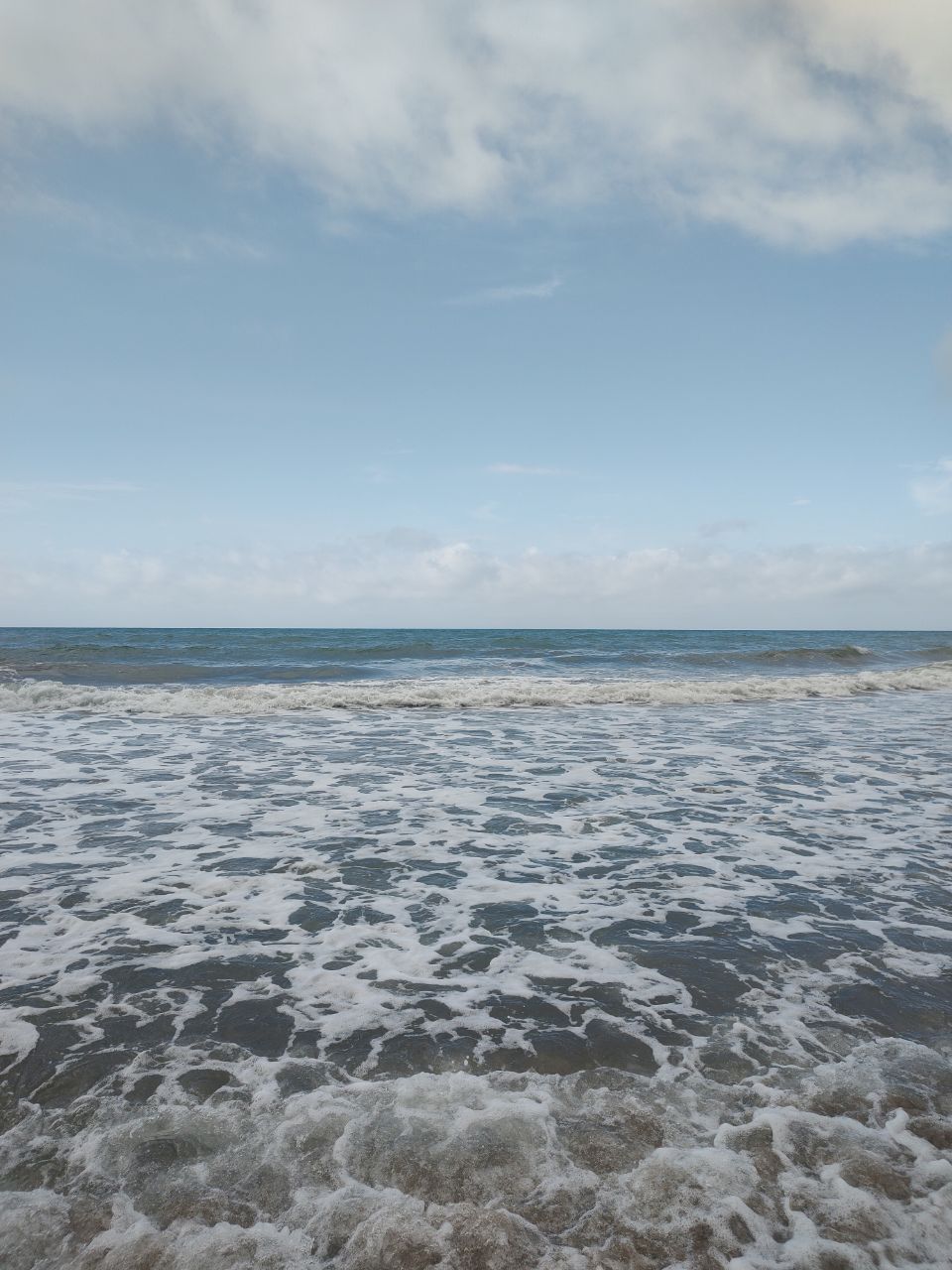 Llegué a la playa y me metí un rato en el mar. El oleaje no es tan fuerte, pero hay que tener cuidado ⚠️