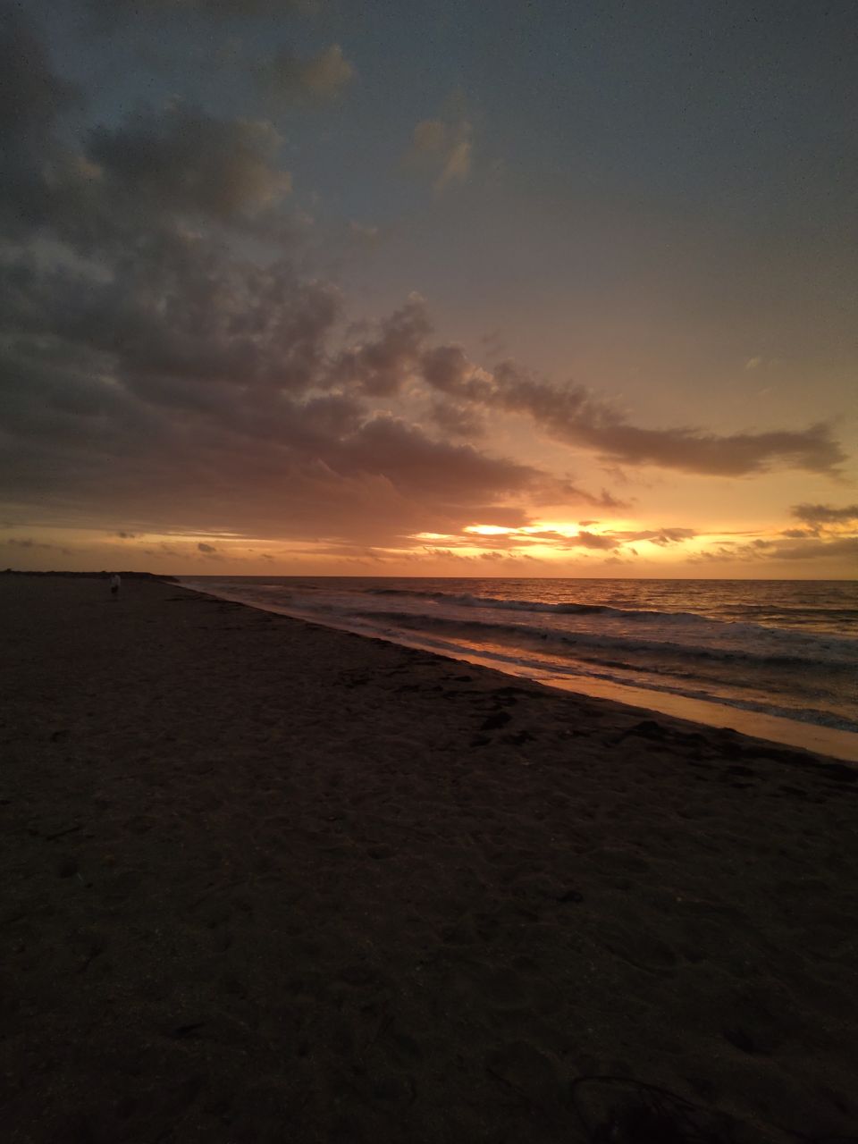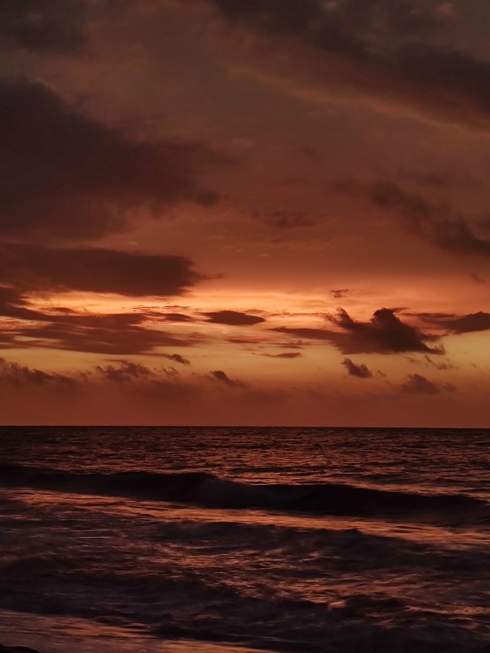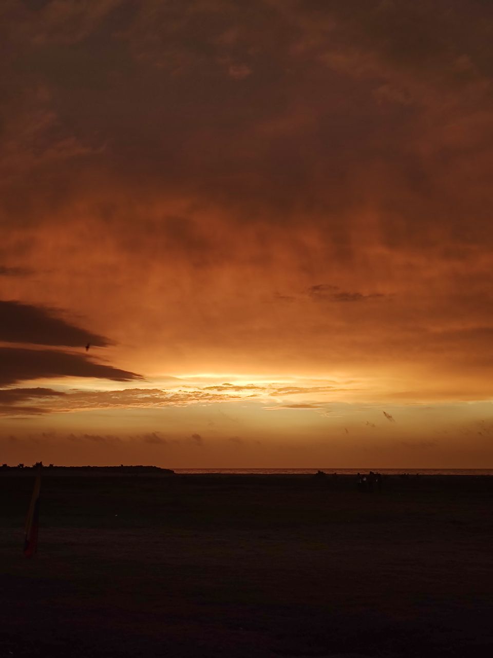 Mientras comía me di cuenta que el cielo comenzó a pintarse de rojo y naranja así que salí a curiosear. Pues resulta que se estaba formando un atardecer hermoso! Así que pagué y me fui con mis buñuelos y mi jugo a contemplarlo al frente de la playa. Tomé unas fotos increíbles! Y creo que ha sido de los atardeceres más bellos que he visto 😍