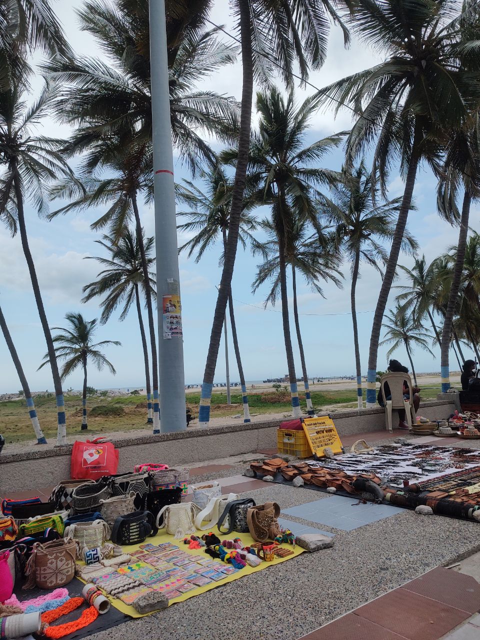 Después de salir del Hostel, me fui al malecón que está allí a dos cuadras. En todo el trayecto hay muchas artesanías para ver todas con ese estilo wayuu muy bonito. Mientras iba contemplando el mar y algunas comparsas que venían pasando por la avenida principal ya que de paso me encontré con un evento político y las personas prepararon la calle y las comparsas para el presidente.