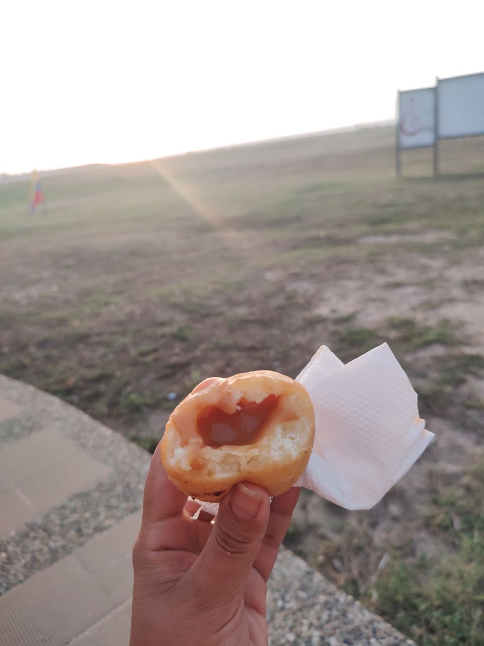 Por la misma avenida principal que recorrí, de regreso conseguí una especie de feria de comida donde había diferentes opciones para comer. Me compré unos buñuelos y una limonada de coco. Ambos estaban increíbles!