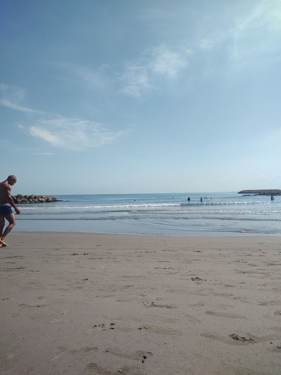 Así que salimos temprano a tomar unos mates 🧉 (si, mate con 35 grados de calor) al orillo del mar. Nos sentamos en la primera playita que encontramos porque se veía sin oleaje. En efecto así era. Estaba el agua perfecta para bañarse y refrescarse un poco. Tomamos mate, comimos buñuelos y disfrutamos del mar mientras nos espantabamos también a los vendedores que no paraban de ofrecernos cosas.