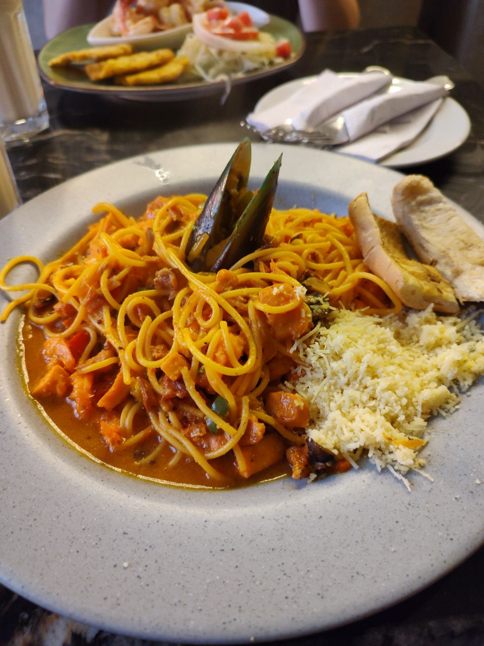 Yo necesitaba volver a tomar esa limonada de coco 😍 así que la pedí, junto con la mejor pasta de mariscos 🦀 que he probado en mucho tiempo! Sin duda creo que todo lo que comas en ese lugar bien vale la pena.