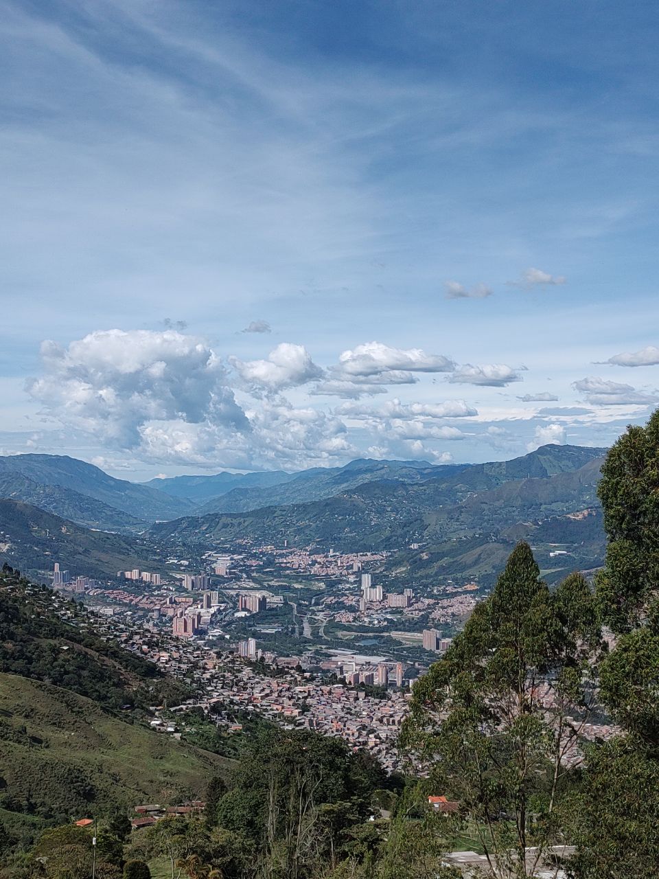 Volvimos a la ruta principal y ahí si nos encaminamos a San Pedro de los Milagros. En el camino comenzamos a subir y cada vez ver más alto Medellín. Realmente es un lugar hermoso. La vista no tiene precio. La carretera en su mayoría es asfaltada y tiene también muchas curvas y subida pues es montañoso. Entre más andábamos más veíamos Medellín a las afueras y a lo lejos.