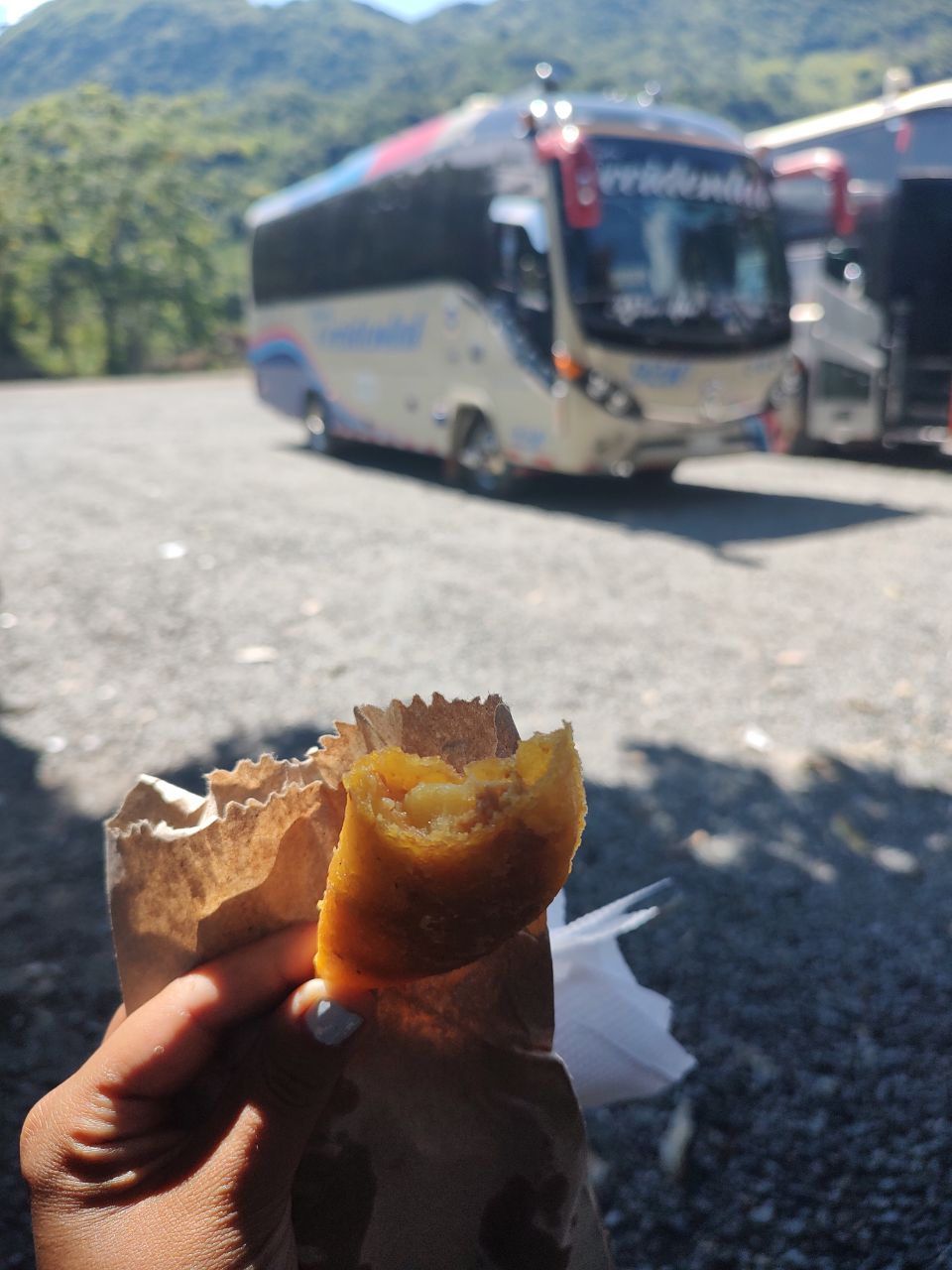 Poco había dormido así que me subí al bus y realmente fueron pocos los ratos que miré el paisaje. Me da un poco de tristeza porque se que la ruta iba a estar preciosa, pero me ganó el sueño. A eso de las 2pm paró en un pueblo que no podría decir cuál es, pero fue cerca de Pereira, a almorzar. Yo me compré dos empanadas y un agua, y aproveché de estirar las piernas y lavarme la cara.