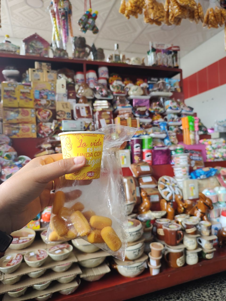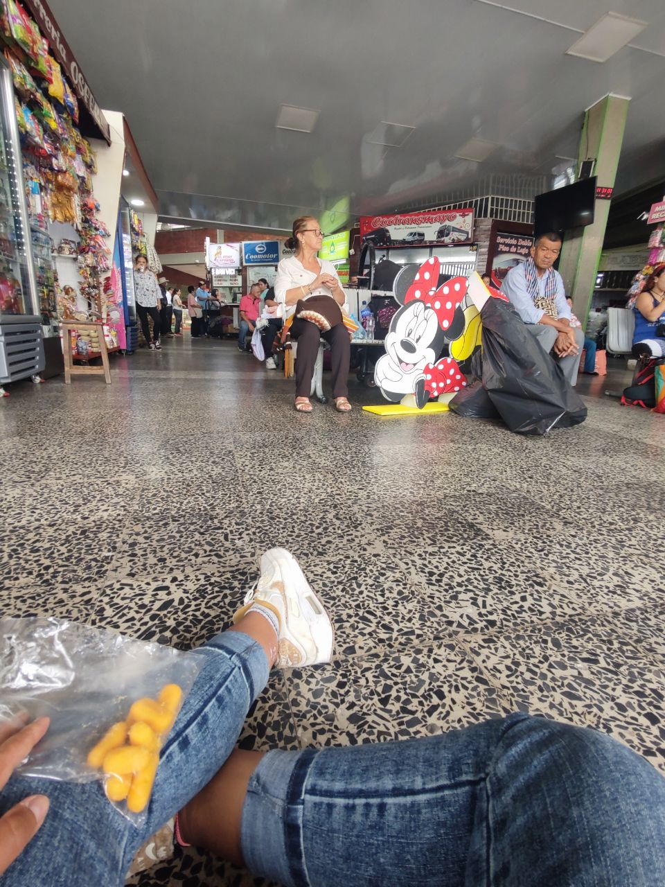 Primero llegué, fui al baño (1.300 COP), me compré un café y unas achiras y me senté en el piso a esperar y escribir un poco.