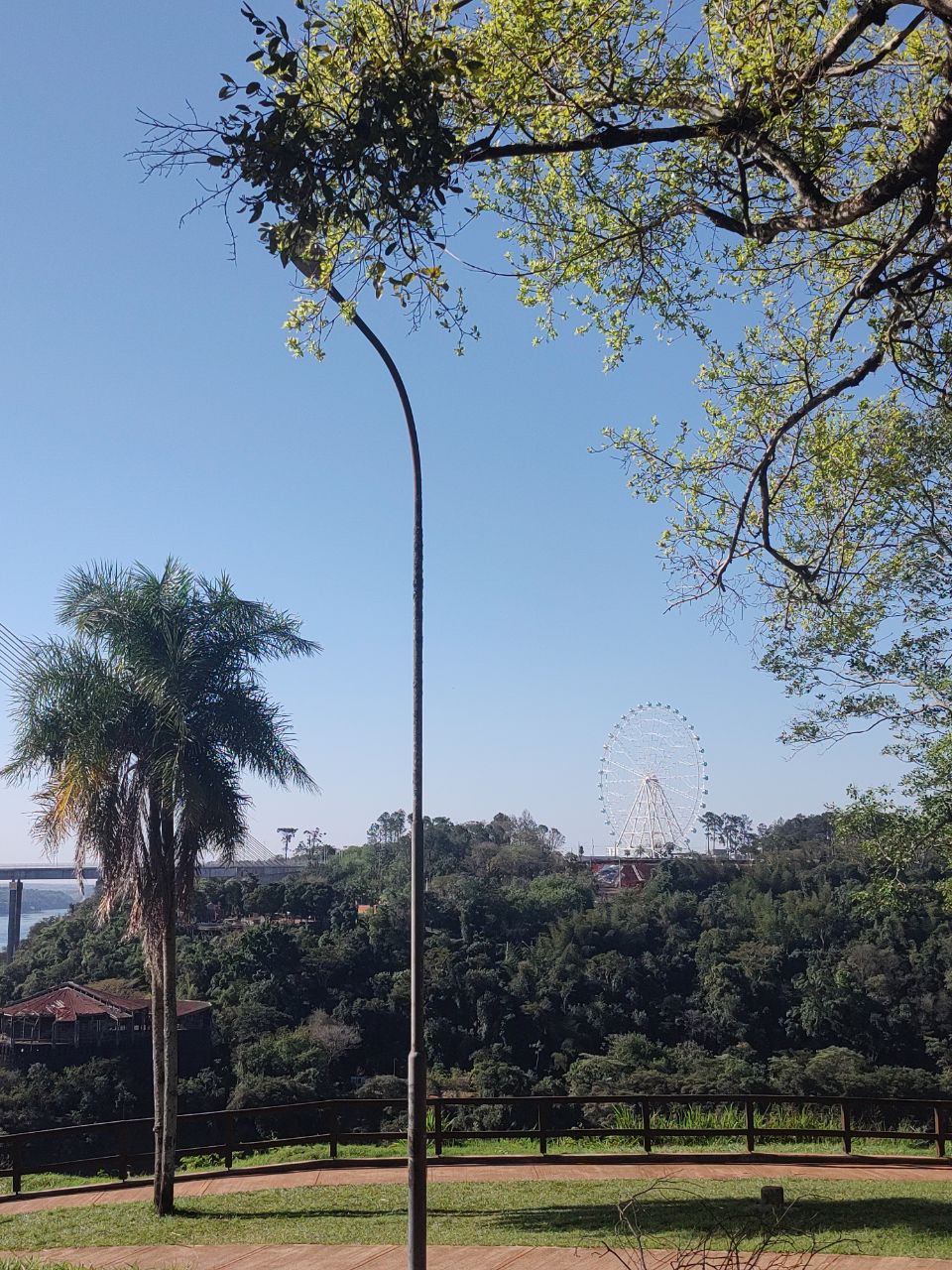 Llegamos al lugar y hay gramita para sentarse, nos tomamos unos mates con alguna galleta o pancito que habíamos llevado. A mí me encanta ver artesanías así que me fui a eso y ellos se quedaron admirando el rio y como se ve la rueda de la fortuna y el monumento de Paraguay.