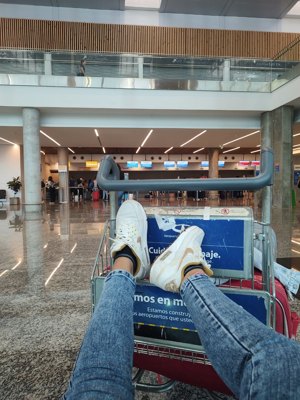 Esperé un montón de tiempo para poder despachar las maletas pues llegué muy temprano. Mientras tanto me tomé un café e hice alguna cosa en el teléfono.