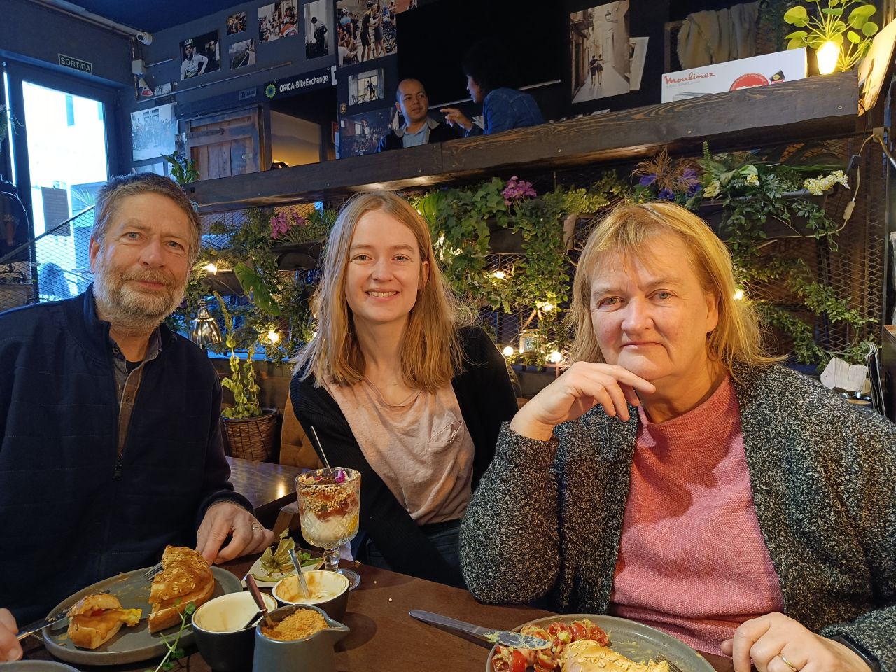 Onderweg naar de boot nog een tussenstop in de mooie stad Girona. Op de foto Liselot met haar ouders bij het laatste ontbijt en een throwback naar onze grote reis 7 jaar terug in Azië, ook daar stonden we aan het begin van de trip.